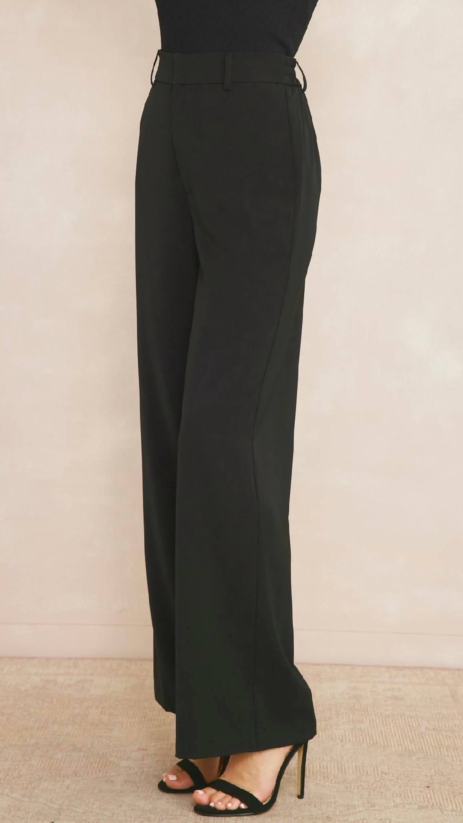 Introducing the Women's Black Slacks by Entro, a chic choice for your spring wardrobe. These wide-leg pants are crafted from 100% Polyester, featuring practical front pockets and faux back pockets for a sleek design. With a solid pattern in classic black, these pants are perfect for a church occasion or any sophisticated event. Pair them easily with your favorite tops for effortless elegance.