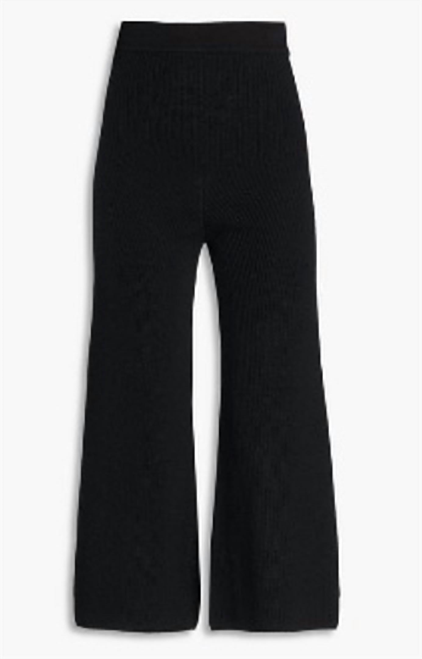 These wide-leg pants are crafted from 100% cashmere, offering a luxurious feel with a ribbed texture and mid-weight knit. Designed with a high-rise cut and an elasticated waistband, they feature a comfortable pull-on style that combines ease with elegance—perfect for elevated everyday wear.