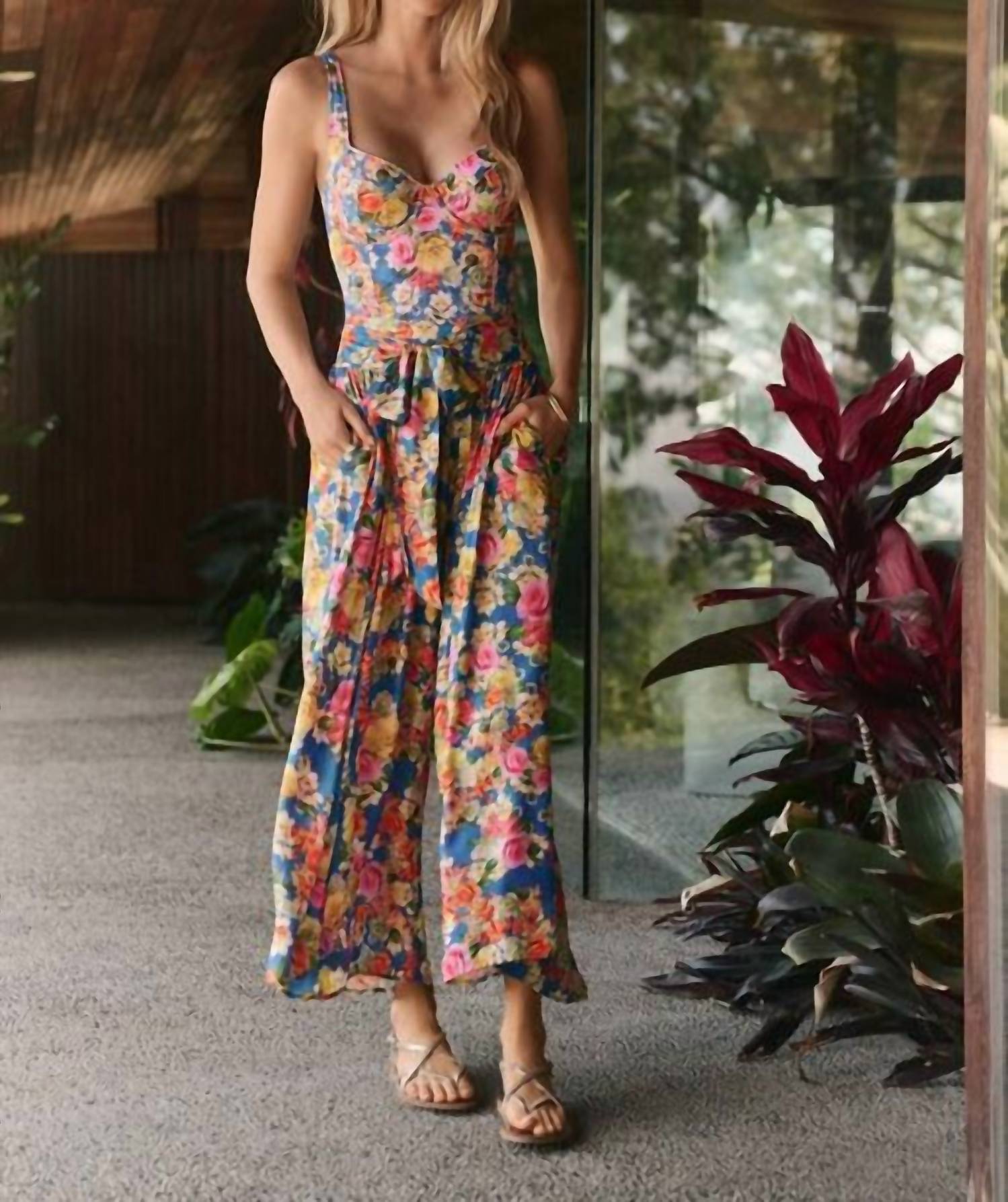 Enhance your wardrobe with this trendy cropped number, designed to blend style and practicality. The comfortable fit allows for easy all-day wear. The perfect length to pair with your favorite mules. Made from a luxurious silk blend, the Pauline Palazzo Cropped Pants feature an elegant, comfortable, relaxed silhouette. They are designed with elastic smocking at the waist and a drawstring for a customizable fit. These flowing floral pants also have convenient pockets at the hips. The model is 5'10" and wearing a size S. Hand Wash