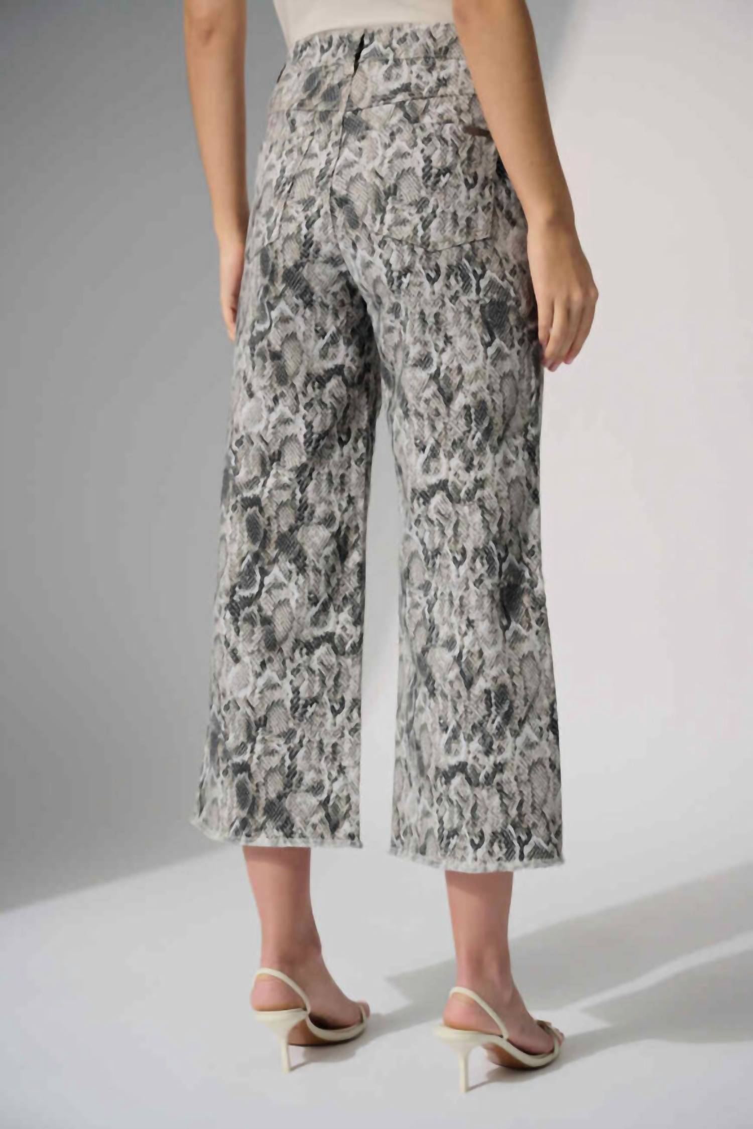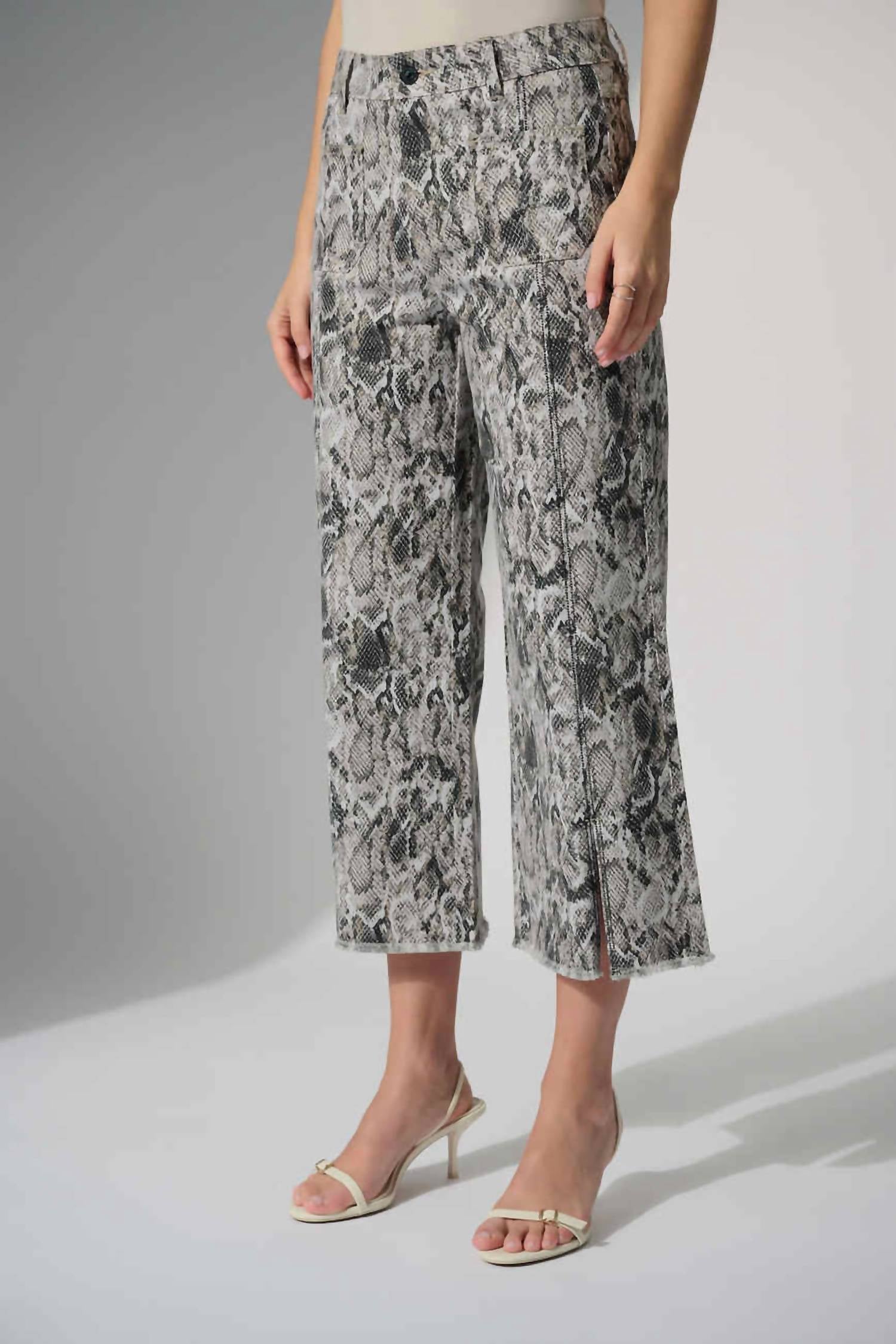 These stretch denim pants feature a modern culotte silhouette that brings bold style to everyday wear. Designed with a four-pocket layout, they’re finished with an embellished front seam, subtle slit, and frayed hem for an effortlessly edgy touch. Made of 97% cotton and 3% spandex.
