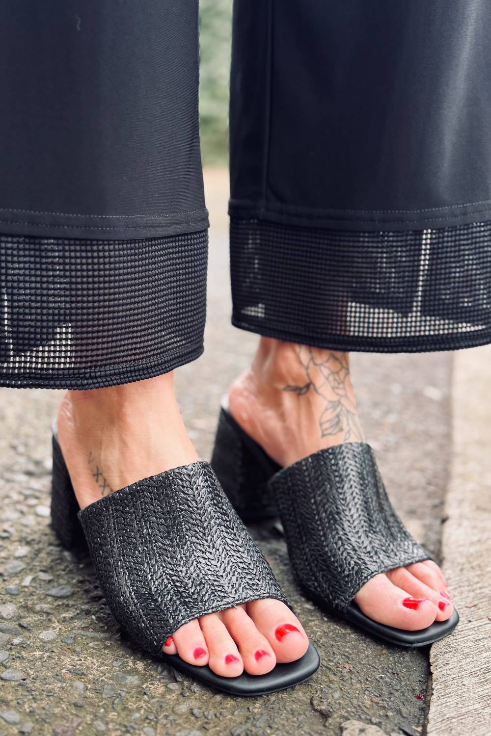 Experience the perfect blend of comfort and style with Joseph Ribkoff's High Waisted Wide-leg Trouser in elegant black. These women’s trousers feature a relaxed fit and wide-leg style with a high-rise elastic waistband, ensuring ease of wear and a seamless pull on fit. Crafted from 96% Polyester and 4% Spandex, they highlight a chic mesh hem for a minimalist, sophisticated look, ideal for various occasions. Care: Cold water hand wash or hand wash cycle, lay flat to dry.