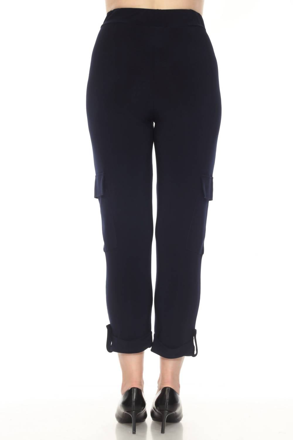Upgrade your wardrobe with these cropped pants, designed to merge sophistication and wearability. The tailored fit ensures ultimate comfort during long days or nights out. Effortlessly blend function with style with the Joseph Ribkoff Slim Cropped Cargo Pants in Midnight Blue, a must-have for modern wardrobes. Featuring a comfortable tie closure and elastic waistband, these pants offer a comfort fit with a straight leg style. Composition is 96% Polyester and 4% Spandex, providing a soft silky knit fabric for versatility and a flattering silhouette. Made in Canada, these pants include utilitarian cargo pockets and roll-up cuffs with button tabs, all while maintaining effortless care with hand wash instructions and line dry recommended.