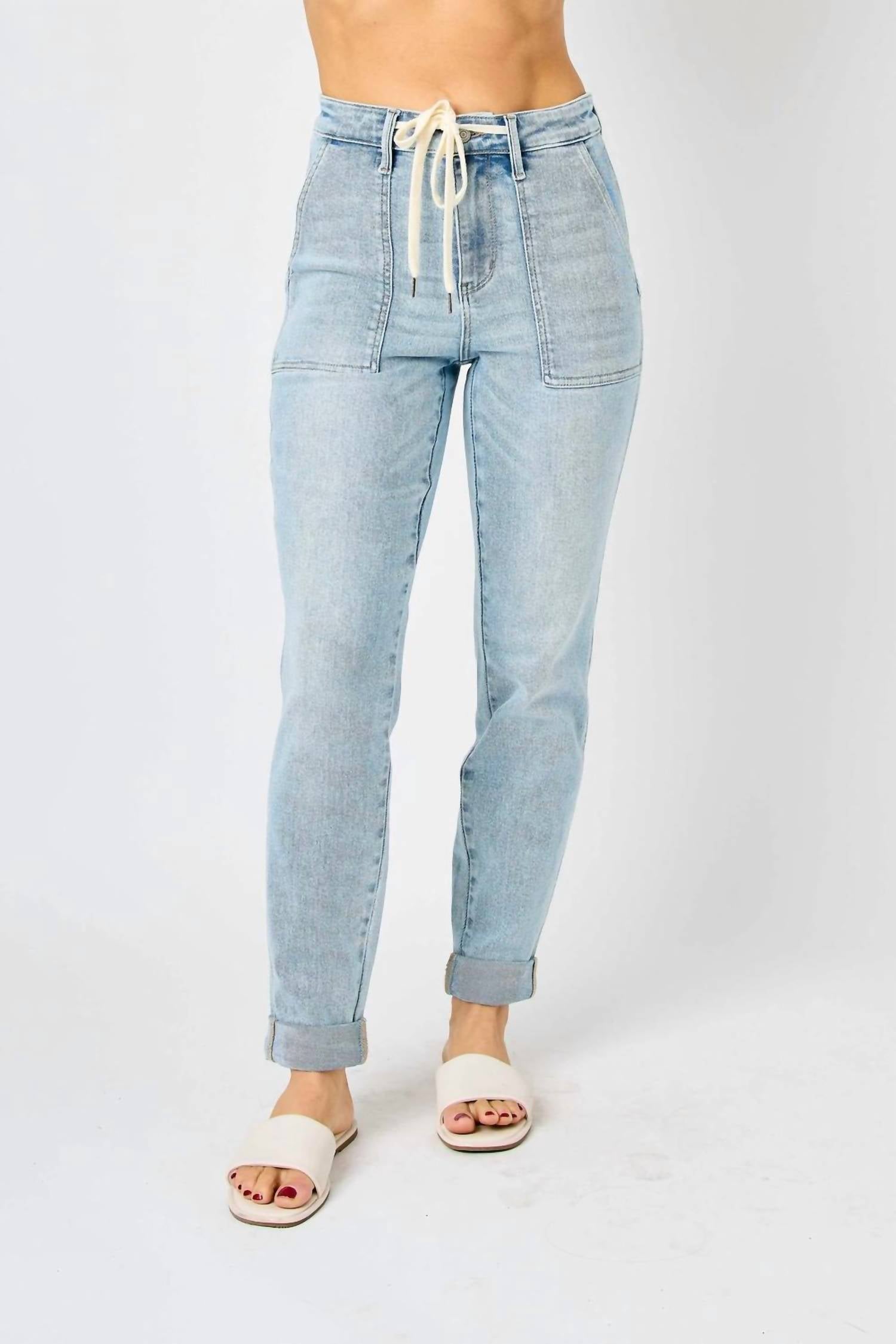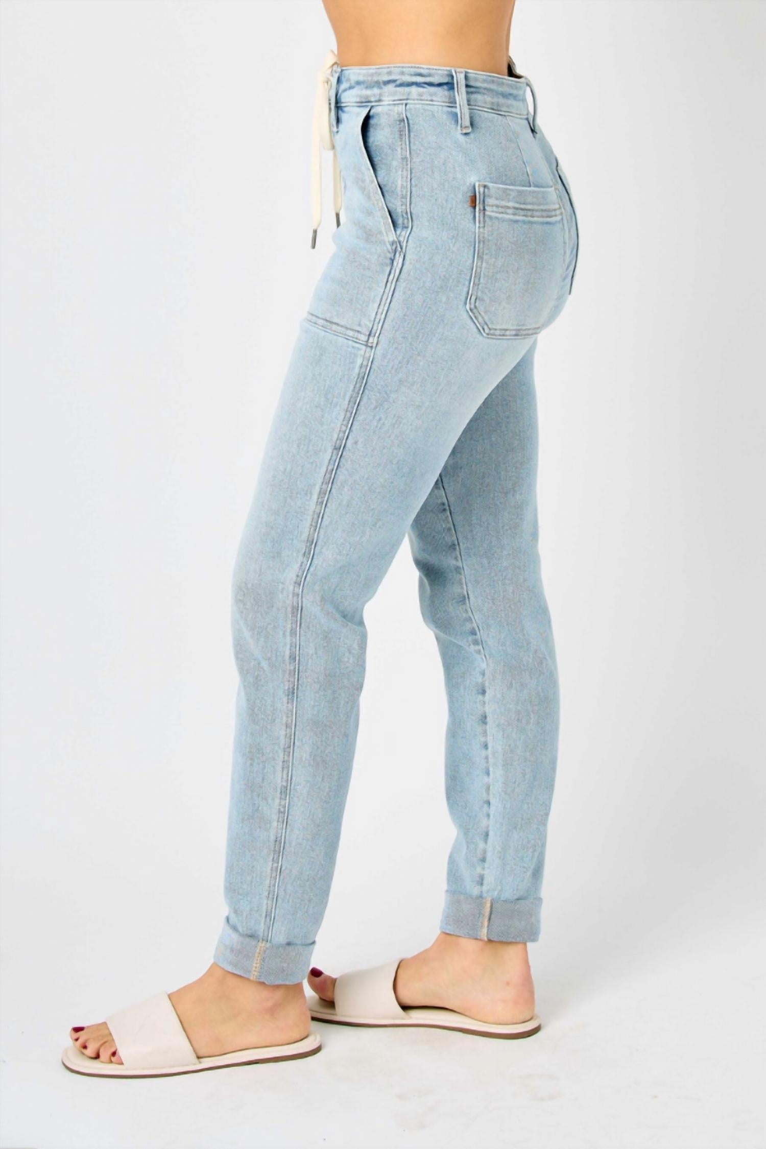 The perfect pant for running around town and looking cool while doing it. Introducing the Judy Blue High Waist Vintage Washed Joggers in a stylish light wash, expertly crafted for both style and comfort. These joggers feature a high waist and a vintage double cuff for a modern, laid-back look, complete with a straight leg. Made from a cotton blend (94% Cotton, 5% Polyester, 1% Spandex), these joggers are perfect for cozy days with a convenient pull-on closure. Care instructions: Machine wash and tumble dry. Front rise measures 11.25", with inseam options of 31" uncuffed or 29" cuffed.