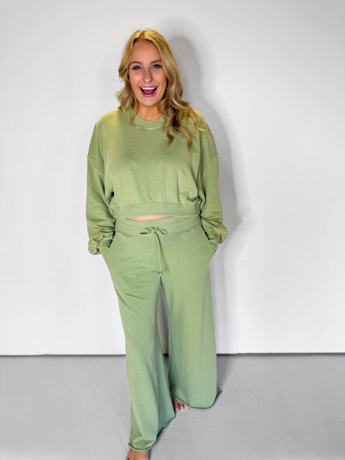 Stay on trend with these stylish boot cut pants that are fit to perfection. The perfect combination of comfort and fashion, you'll be grabbing for these all season long! Elevate your casual wardrobe with the Remy Flared Pant by LALAMIA, designed for both style and comfort in a striking green hue. These high-rise, wide-leg pants offer a relaxed fit, enhanced by their pull-on closure for effortless wear. Perfect for a minimalist and vibrant look, these solid pattern pants feature a convenient pocket detail. Ideal for spring vacations or a casual day out, they seamlessly blend trendy design with practicality.