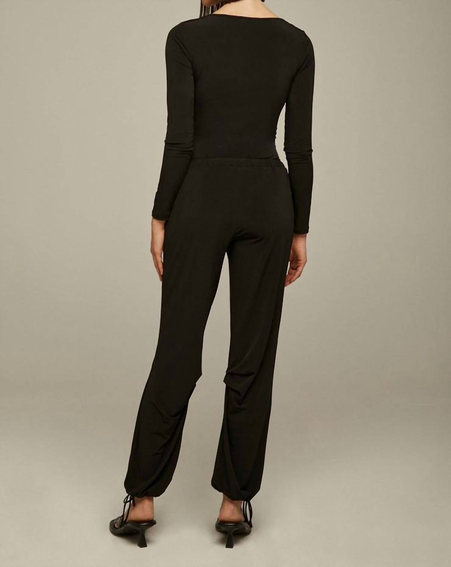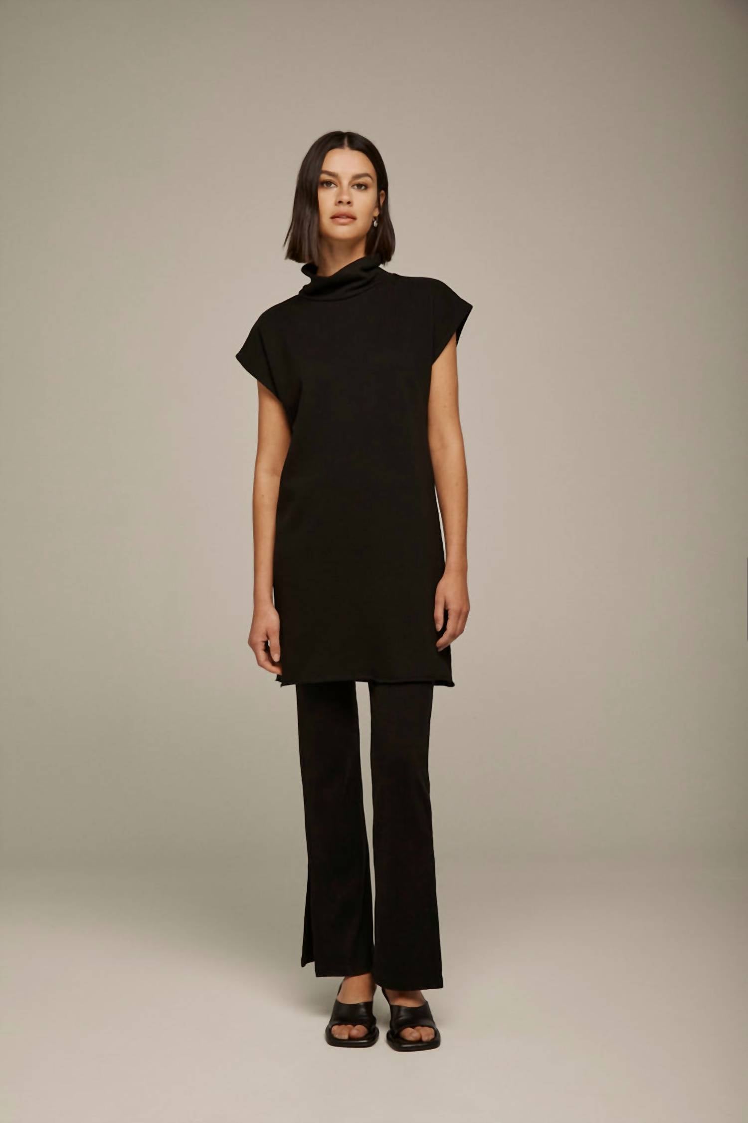 A straightleg pant that workes season after season. Dress these up with your favorite blouse or keep it casual with your go-to tee. The Straight Leg Rib Pant by Lanston offers a relaxed fit with high-rise styling, tailored for versatile wear. Crafted in the USA from 65% Tencel, 28% Cotton, and 7% Spandex, these textured black pants feature a comfortable pull-on elastic waistband. The ribbed Declan fabric, garment dyed for softness, enhances the silhouette with side slits for a subtle flare. Care for these pants is easy with machine wash cold and line dry instructions.