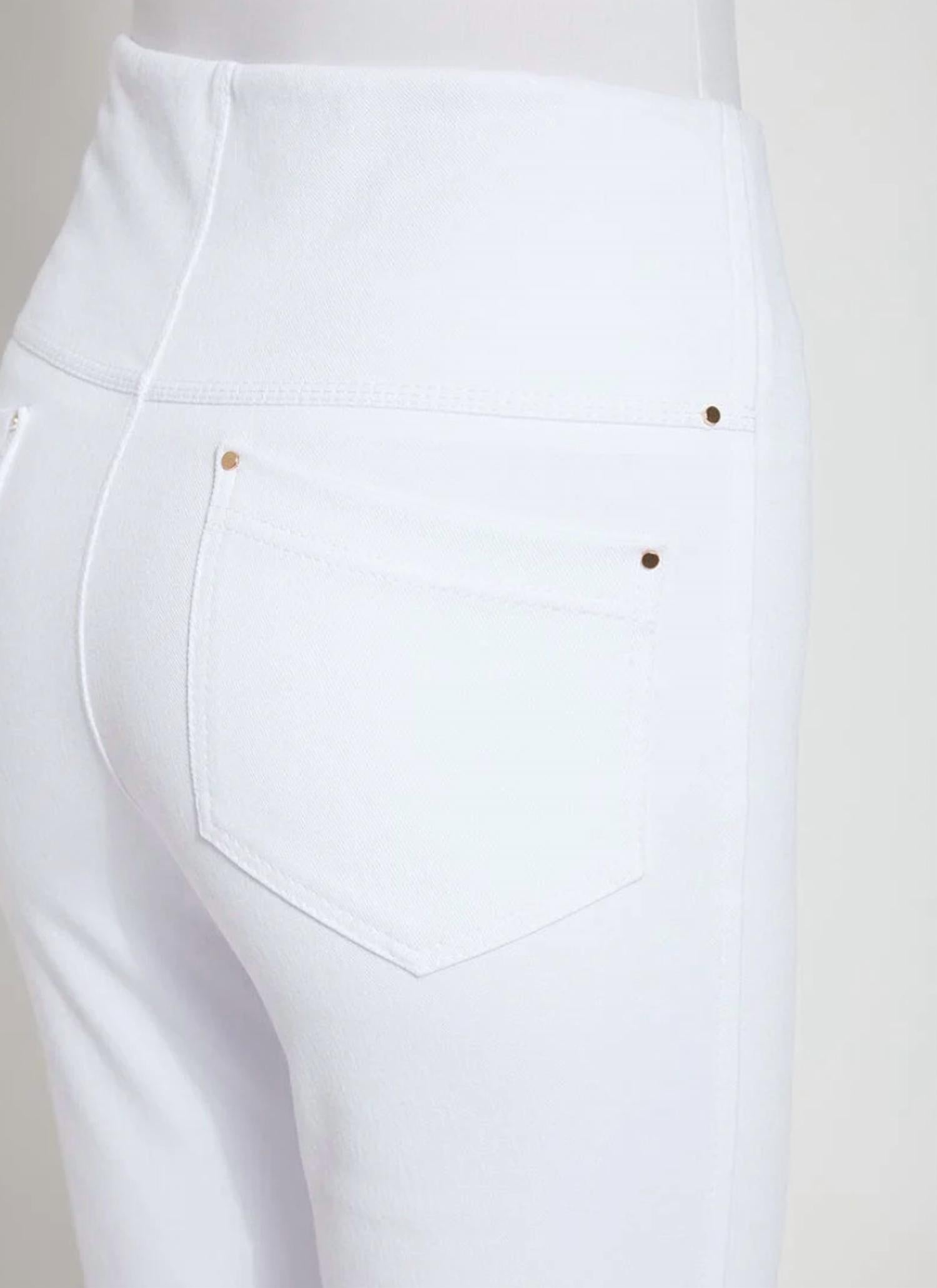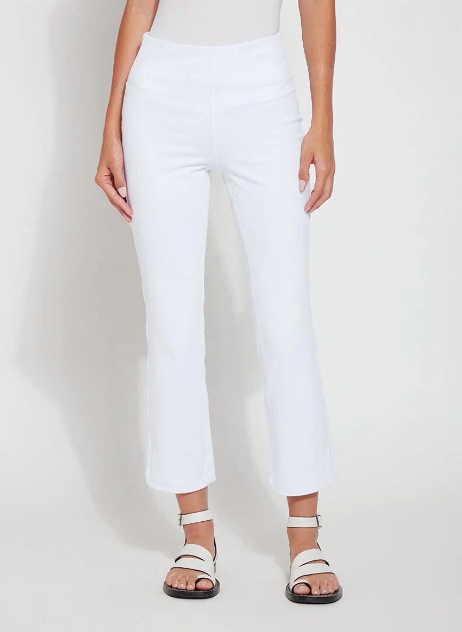 Slightly flared pants are all the rage right now and these are no exception. Pair these with your favorite tee for a more casual look, or with your favorite button-up blouse for an evening out. The Women's Boot Cut Denim Pant by Lysse offers a perfect blend of style and comfort for any summer vacation. These solid white bootcut pants feature a versatile mid-rise waist and a convenient pull-on closure, making them ideal for minimalist styling. Made from high-quality denim with a light wash, these pants provide a chic flare with practicality, including functional pockets. For maintenance, simply machine wash and tumble dry as needed.