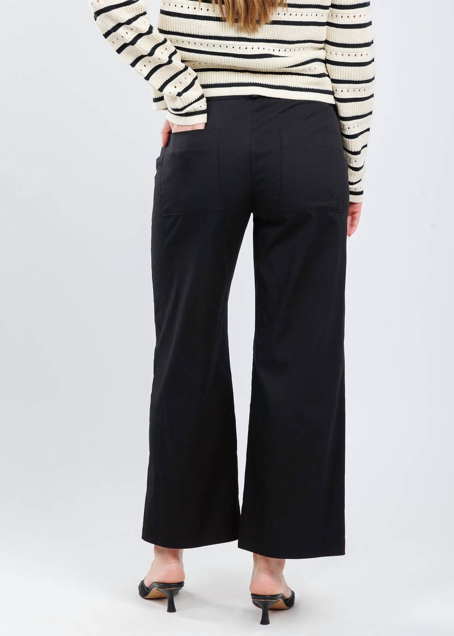 Stay on-trend and showcase your impeccable taste with these adaptable and stylish cropped pants. The perfect length to wear with your favorite mules. You'll love the fit! Introducing the MAC Chiara Crop Pants, a sophisticated blend of style and comfort in classic black. These relaxed wide-leg pants are crafted from a cotton blend consisting of 76% Cotton, 21% Polyamide, and 3% Elastane, perfect for versatile wear. Designed with a cropped length, these pull-on pants feature a drawstring waistband and practical French side pockets, alongside piped back pockets. Care is simplified with machine washing, and the model, wearing a size 2, showcases a 29" inseam with a relaxed fit.