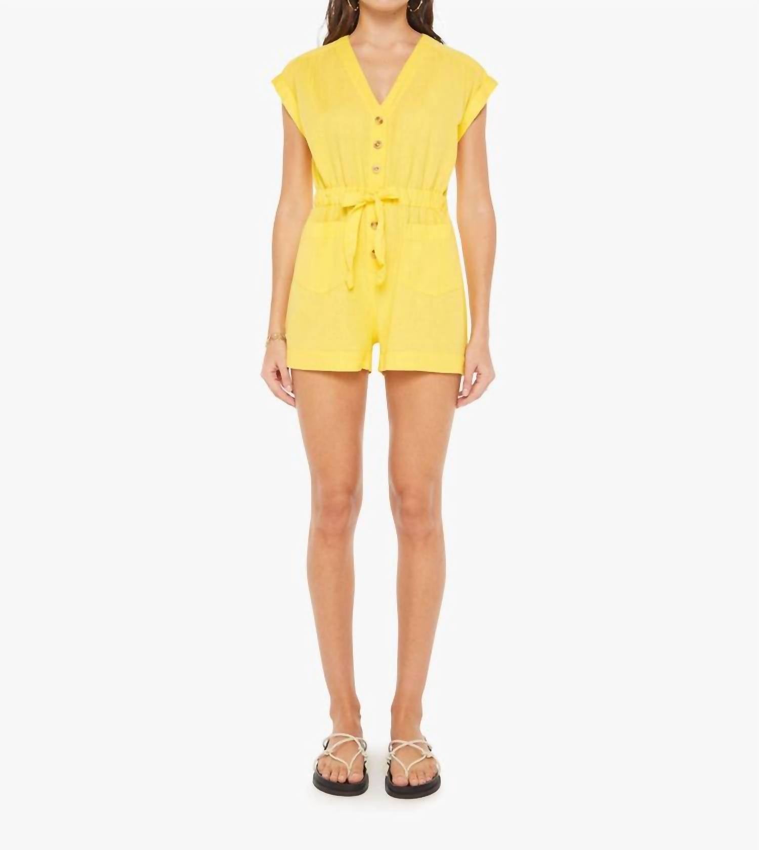 Throw it on and go! This elegant piece features rolled short sleeves, a flattering V-neck, wide leg style, and functional patch pockets, finished with a convenient button closure. Made from 100% cotton, its textured design enhances both comfort and style. Imported.