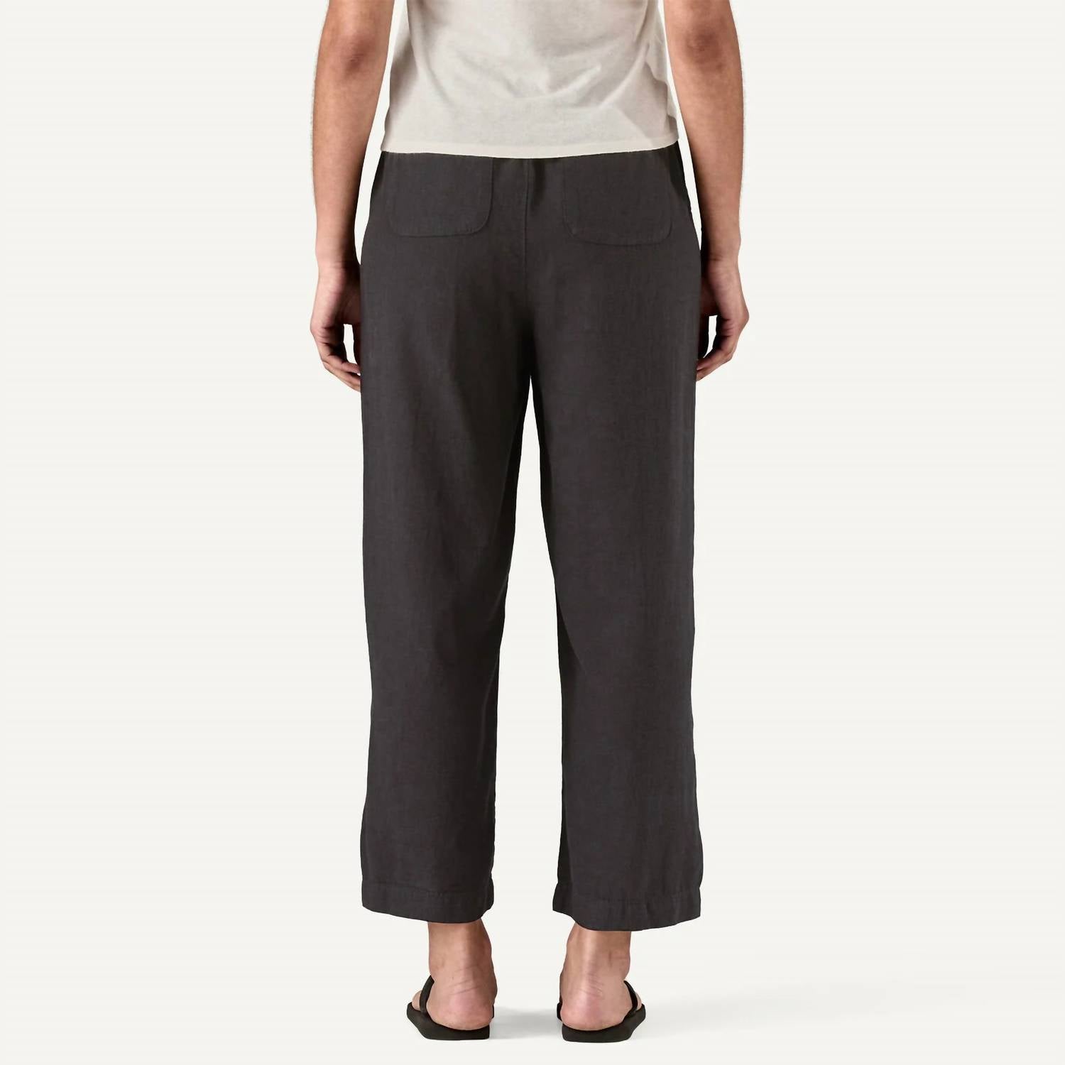 Embrace effortless style with the Women's Garden Island Pants by Patagonia in classic black, perfect for warm weather. These pants feature high-rise waist and a pull-on closure, crafted from a soft blend of 55% industrial hemp and 45% TENCEL™ lyocell. Designed with a generous rise and dropped crotch, they offer a relaxed fit and wide legs for an airy feel. Made in Sri Lanka, they feature two side-seam front pockets and two drop-in back pockets in a Fair Trade Certified™ factory. Care for these pants with ease: machine wash and tumble dry. Weight: 247 g (8.7 oz).