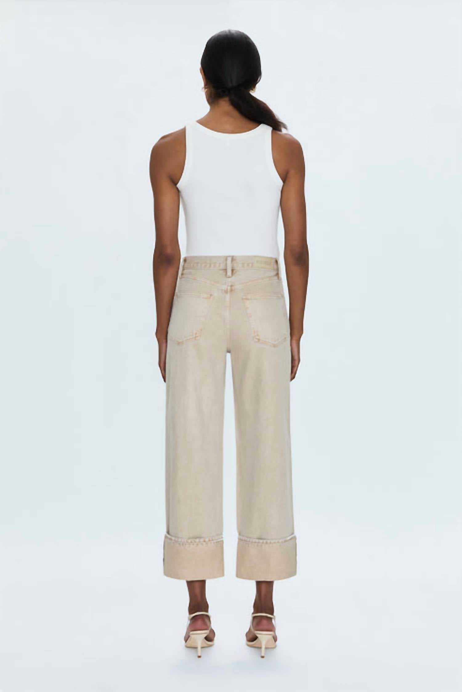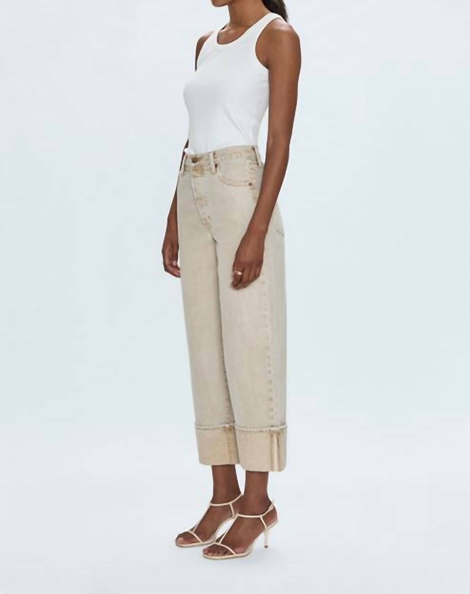 Upgrade your wardrobe with these cropped pants, designed to merge sophistication and wearability. The tailored fit ensures ultimate comfort during long days or nights out. These high-rise wide-leg jeans offer a relaxed fit with an effortlessly cool, vintage-inspired vibe. Crafted from rigid, lightweight denim, they feature an oversized cuffed ankle hem that adds a unique touch to the classic silhouette. A go-to pair for laid-back yet elevated style.