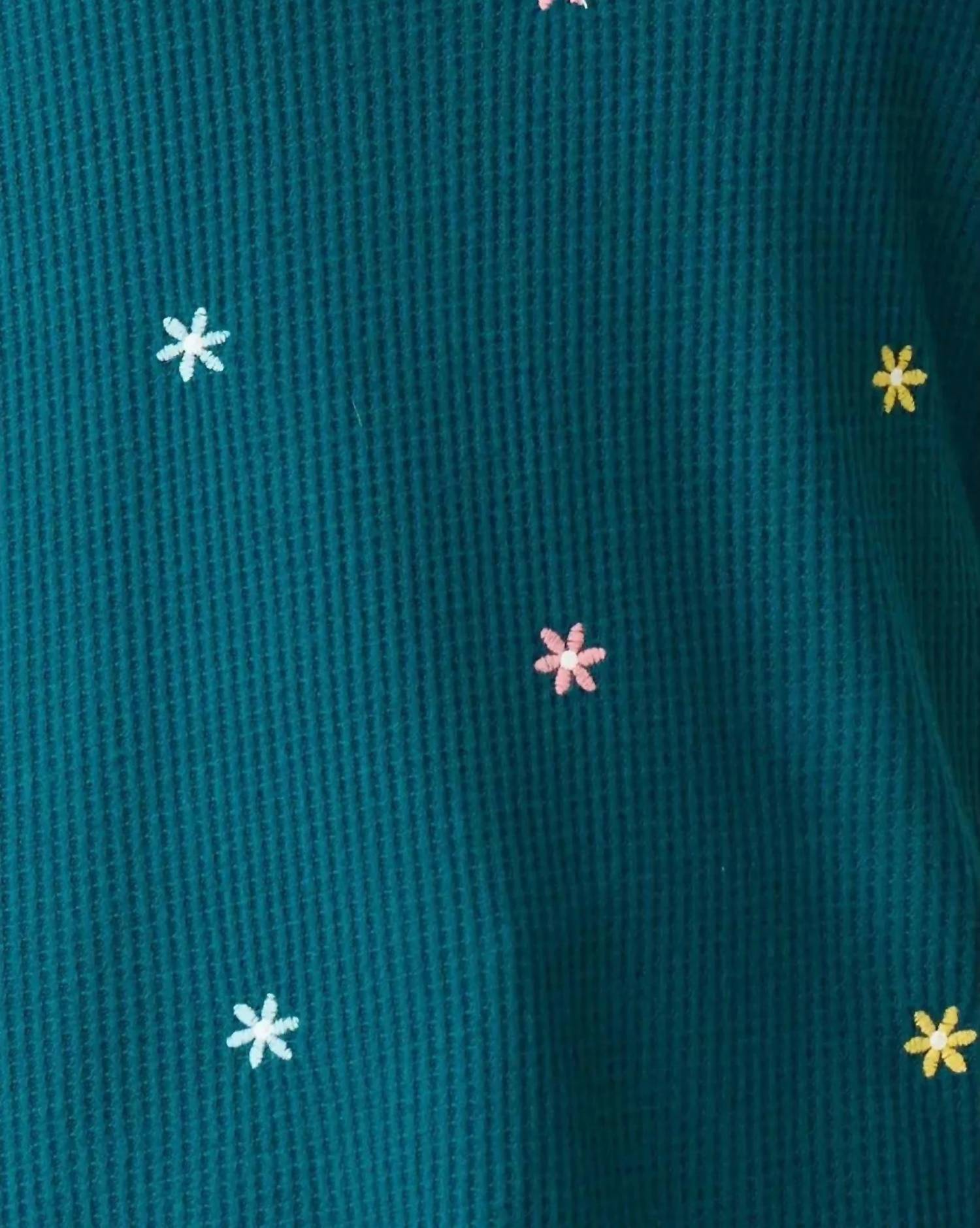 No gym necessary for these cool-girl joggers. Embrace relaxation with the PJ Salvage Take It Easy Pants, featuring a charming embroidered floral pattern. These women's jogger pants are made from a comfortable blend of 65% Polyester and 35% Rayon in a brushed waffle thermal fabric, offering a straight-leg, comfort fit. The pull-on design ensures easy wear, making them perfect for both lounging and casual outings. Pair them effortlessly with your favorite tops for a laid-back yet stylish look.