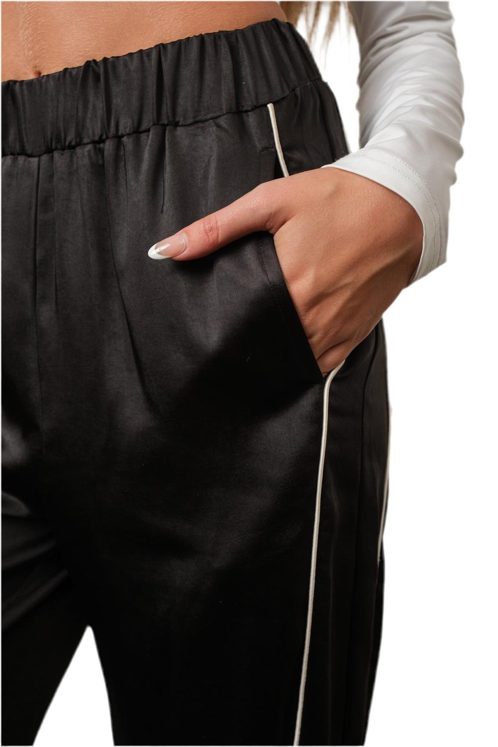 Step into style with the Center Stage Satin Pants by Pretty Garbage, featuring a high-rise, wide-leg silhouette for a chic Scandi style. Made from luxurious satin with a streamlined white stripe, these pants include an elastic waistband for optimum comfort. The pull-on design enhances ease, while two pockets provide practicality. Care is simple with machine wash and tumble dry, making these pants as easy to maintain as they are to wear 100% Satin.