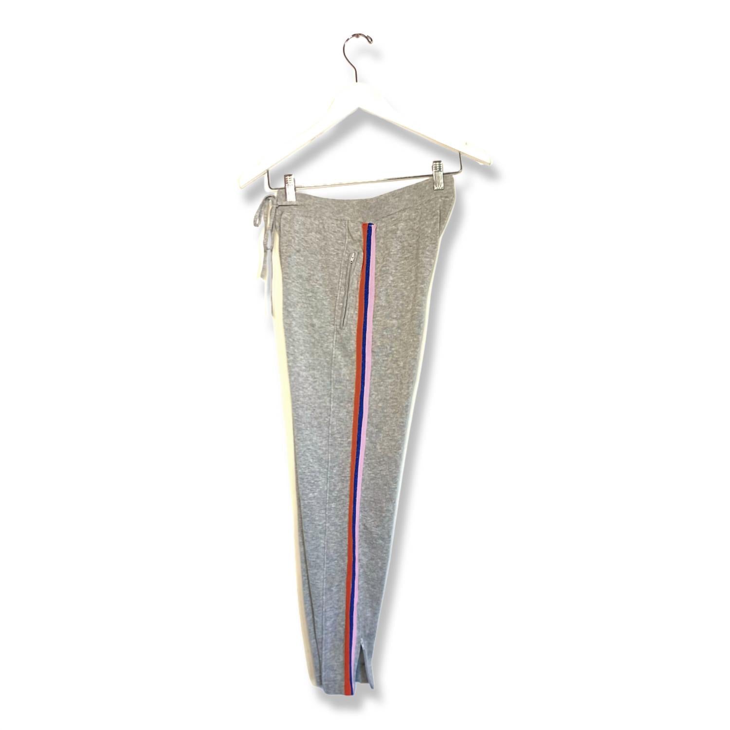 Pair these with your favorite sneakers for an effortlessly cool look. Introducing the Women's Old School-style Track Pants by Replica Los Angeles, merging vintage charm with contemporary flair. These slim-fit pants feature tri-color side stripes and lurex accents, with zipper details on pockets and ankles for a tapered look. Crafted from a comfortable cotton blend, they include practical pockets and a pull-on closure. Care: Dry clean or hand wash cold, suitable for active spring days and casual travel occasions. Fits size S, can also accommodate size M.