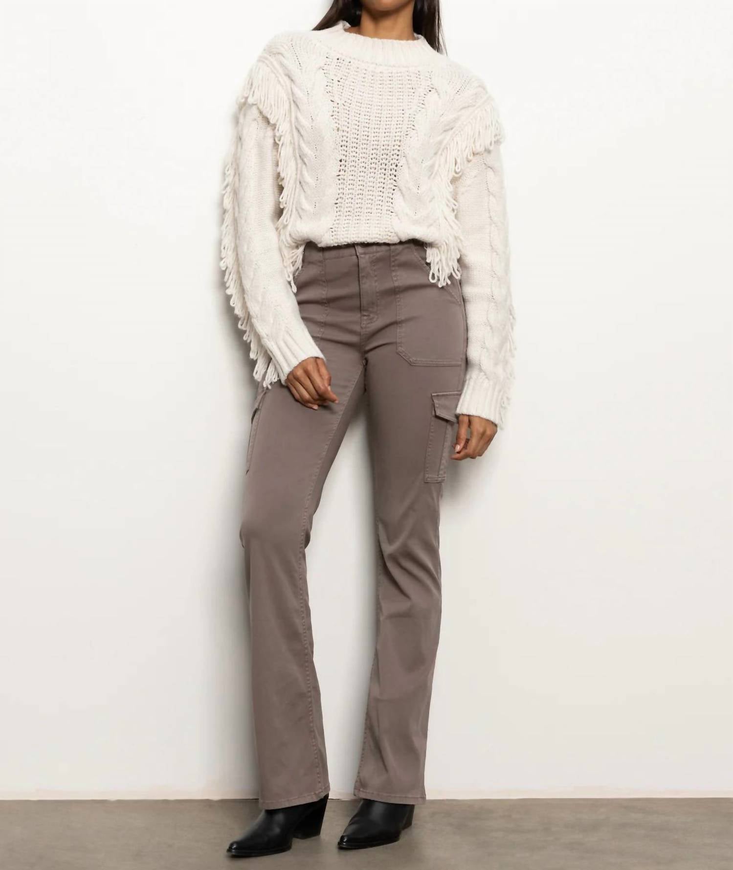 Slightly flared pants are all the rage right now and these are no exception. Pair these with your favorite tee for a more casual look, or with your favorite button-up blouse for an evening out. Introducing the Sanctuary Sculpted Hayden Bootcut Pant, a wardrobe staple designed for comfort and style. This pant features a standard rise and a bootcut leg, crafted from a sculpted twill blend of 55% cotton, 29% rayon, 13% polyester, and 3% spandex, ensuring a perfect fit. With a button front and zip fly closure, it also offers practicality with 2 front, 2 back flap, and 2 side cargo pockets. Made in an imported solid cocoa shade, care for this versatile piece by machine washing cold and laying it flat to dry.