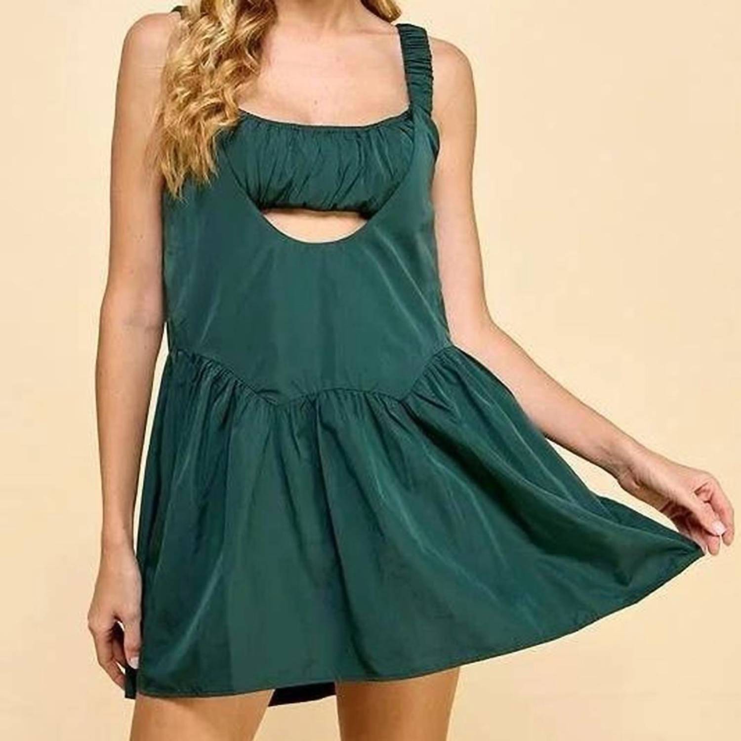 Throw it on and go! the perfect combination of sporty and chic. This beautifully designed romper features ruched wide straps for a flattering athletic look. The low scoop neck and built-in bra provide added support, while the shorts and ruffle hem add a flirty and feminine touch. Whether you're hitting the gym or running errands, this romper is the ultimate go-to for a comfortable and stylish outfit. Available in a versatile coco color, this romper is a must-have for your wardrobe.