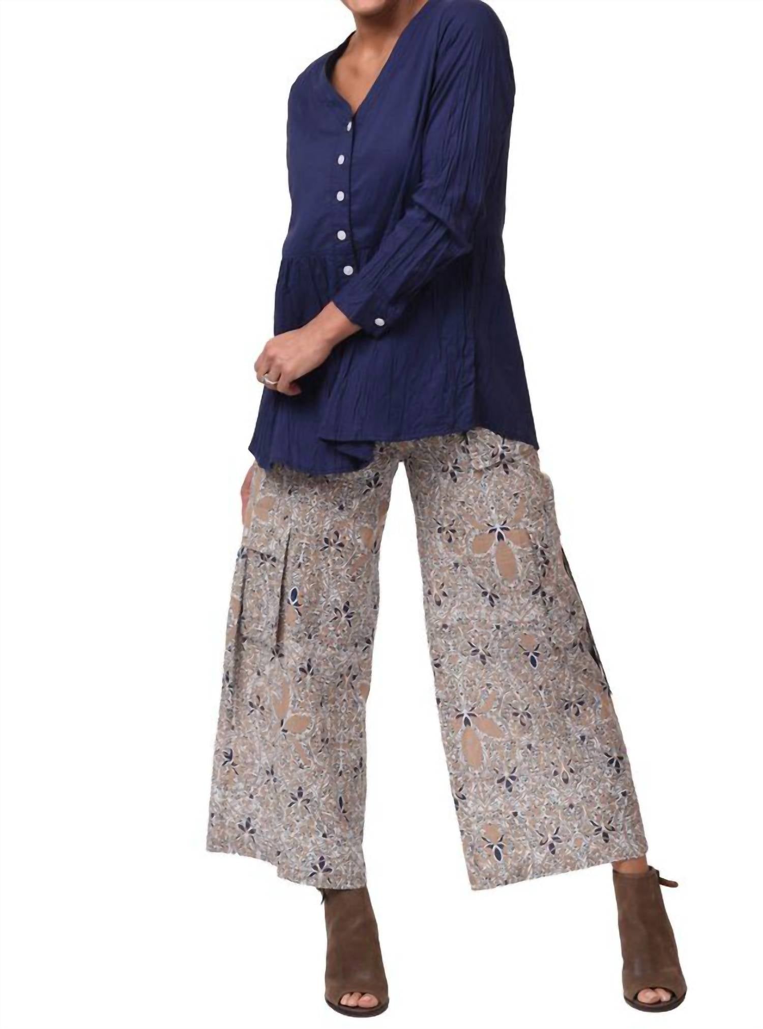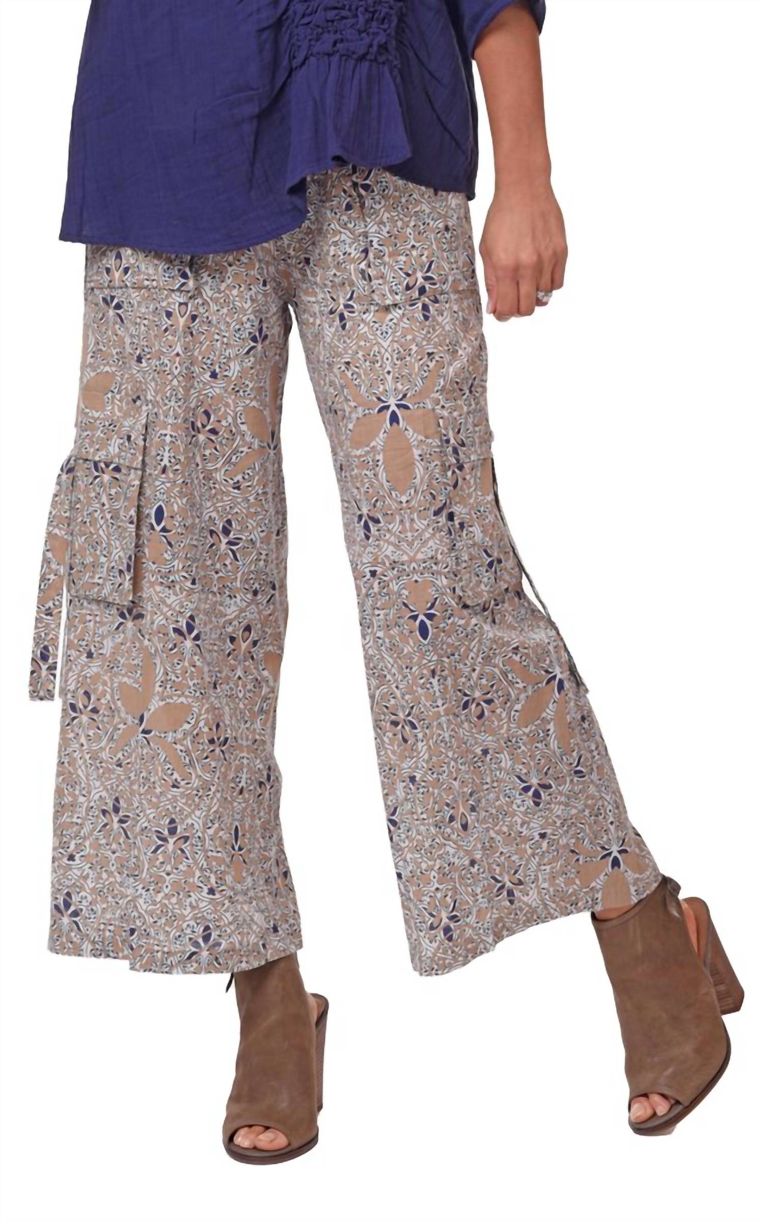 Elevate your wardrobe with the Calista Cargo Pant by Tulip Clothing, designed in a stylish Kumari hue. These wide-leg pants feature working cargo pockets and a button closure on the waistband with a convenient zipper below. Made entirely of 100% cotton, they offer an inseam of 26.75 inches and an overall garment length of 37 inches for a sleek look. Care instructions include machine wash and line dry for effortless maintenance. Model is wearing a size small.