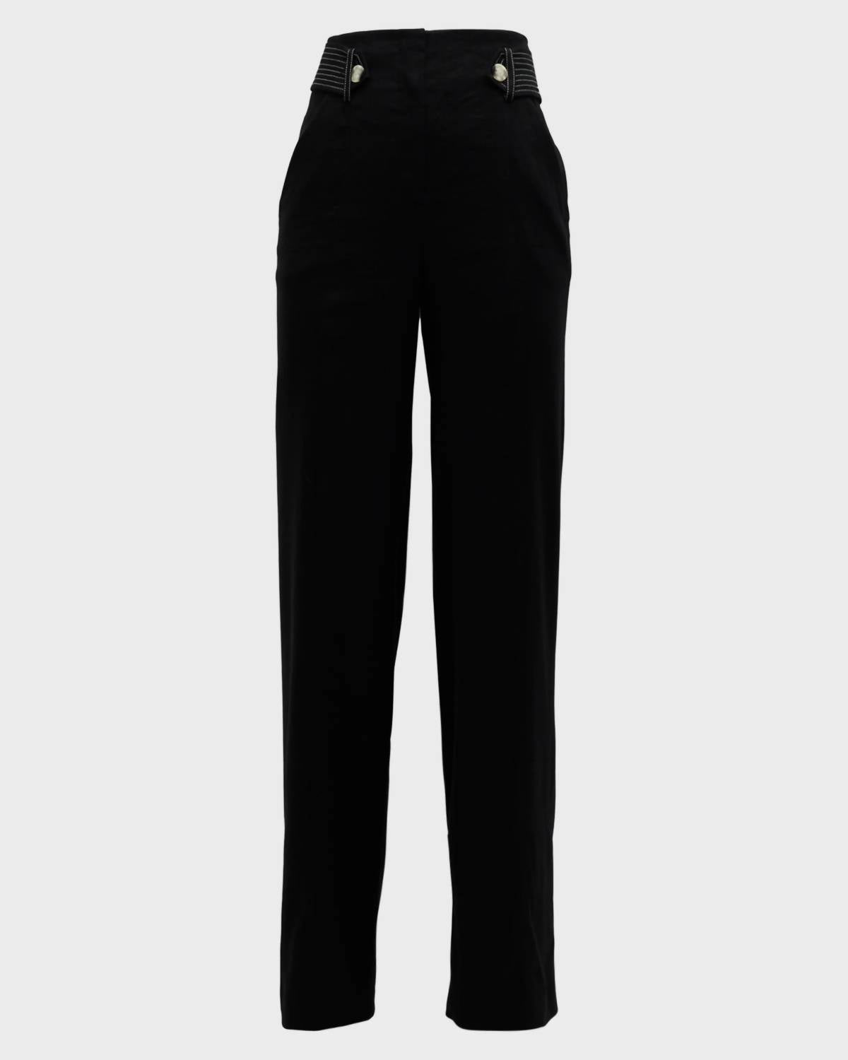 Refine your summer workwear wardrobe with the Sunny Pant by Veronica Beard, a perfect black piece for chic vacations or office days. These women's wide-leg pants are tailored from a structured linen blend, featuring 55% Linen, 4% Viscose, and 1% Elastane, sourced from Italy, ensuring both comfort and style. With a high rise of 12" and a generously wide leg opening of 21 3/4" based on size 2, these pants sit elegantly high on the waist. Opt for a professional dry clean to maintain their polished look, and enhance your silhouette with front tabs that cinch your waist effortlessly.