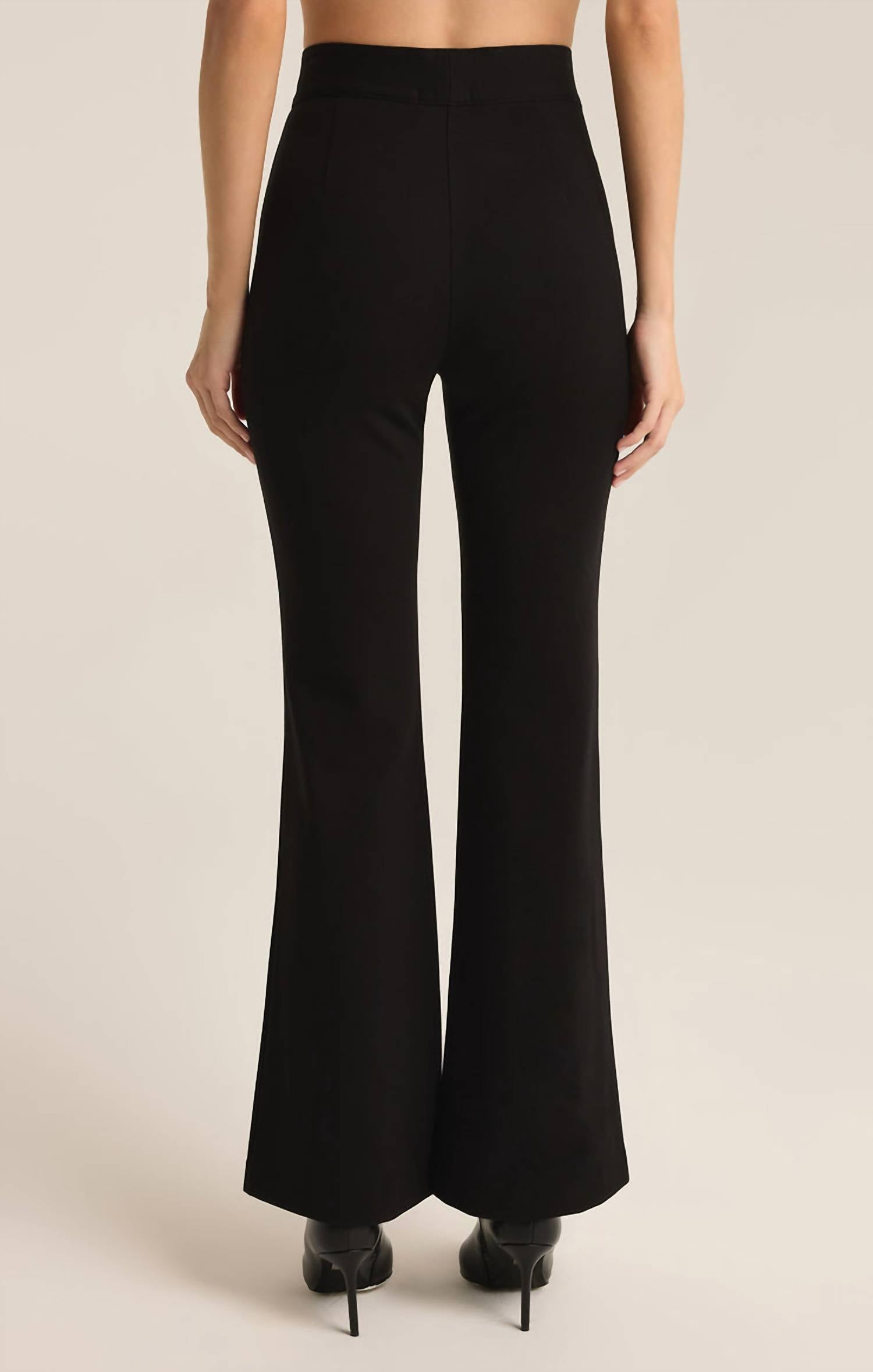 Introducing the Do It All Slim Kick Pants by Z Supply, a sleek addition to your wardrobe ideal for any occasion. Crafted from velvety smooth rayon with a composition of 62% Rayon, 33% Nylon, and 5% Spandex, these full-length pants offer a high rise fit with a flared leg design and an elastic waistband for comfort and style. Closure: Pull On. Care: Machine wash cold, tumble dry. Color: Black. Perfect for seamlessly transitioning from office wear to daily life.