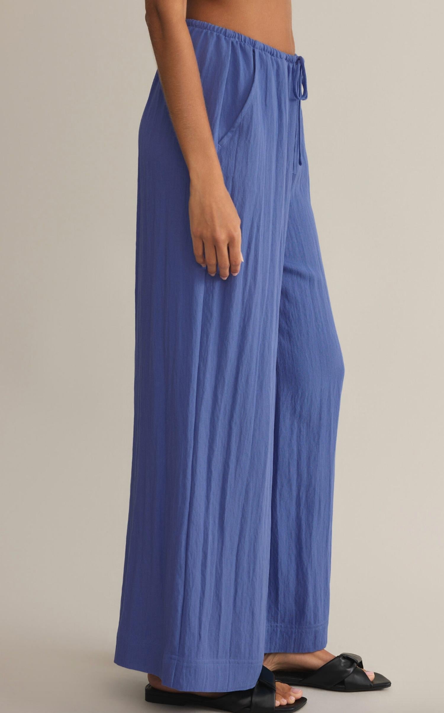 A straightleg pant that workes season after season. Dress these up with your favorite blouse or keep it casual with your go-to tee. Step into style with the Soleil Textured Pants by Z Supply, designed for a relaxed yet refined look. These mid-rise, full-length pants in a Riviera hue feature side seam pockets and a comfortable pull-on closure. Constructed from a lightweight blend of 90% Rayon and 10% Nylon, they offer a soft, heavy wash feel for added comfort. Care instructions recommend machine washing and line drying to maintain their minimalist spring-ready appeal.