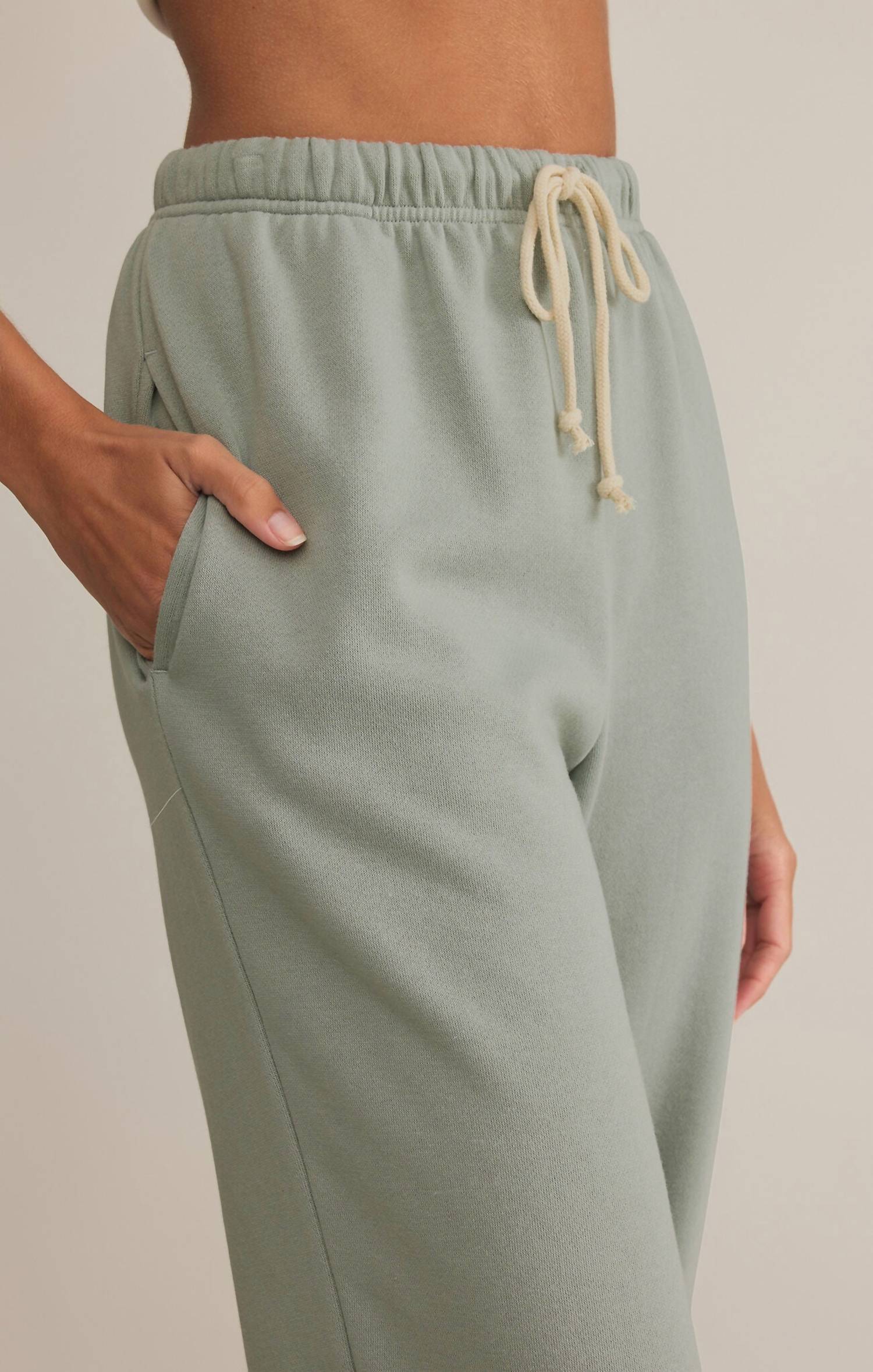 Pair these with your favorite sneakers for an effortlessly cool look. Experience the ultimate comfort and style with the Stadium Jogger by Z Supply, perfect for both outdoor and indoor activities. Designed in a soothing sage green, these straight-leg joggers feature a regular fit and a convenient pull-on closure. They offer a mid-rise waist and handy pockets, making them ideal for hiking and casual outings. Care: Machine wash and tumble dry to maintain their soft and cozy feel.