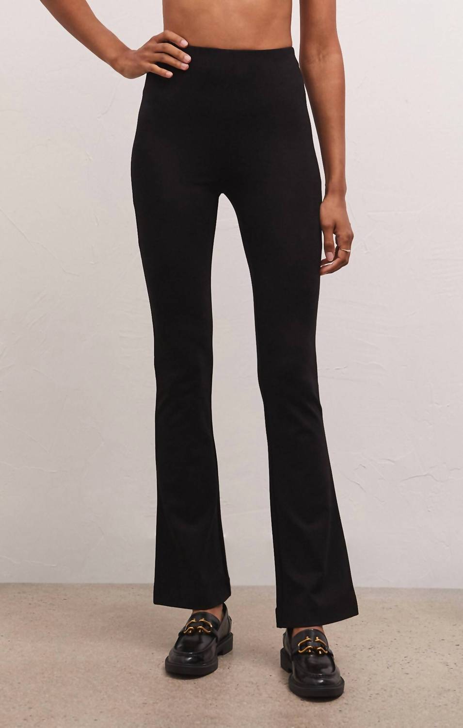 Made using our Mid Weight Ponte fabric. This fit-and-flare high rise pants features a slim fit throughout the hips. A kick flare and pull-on waistband. 62% Rayon 33% Nylon 5% Spandex. Machine wash.