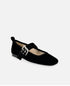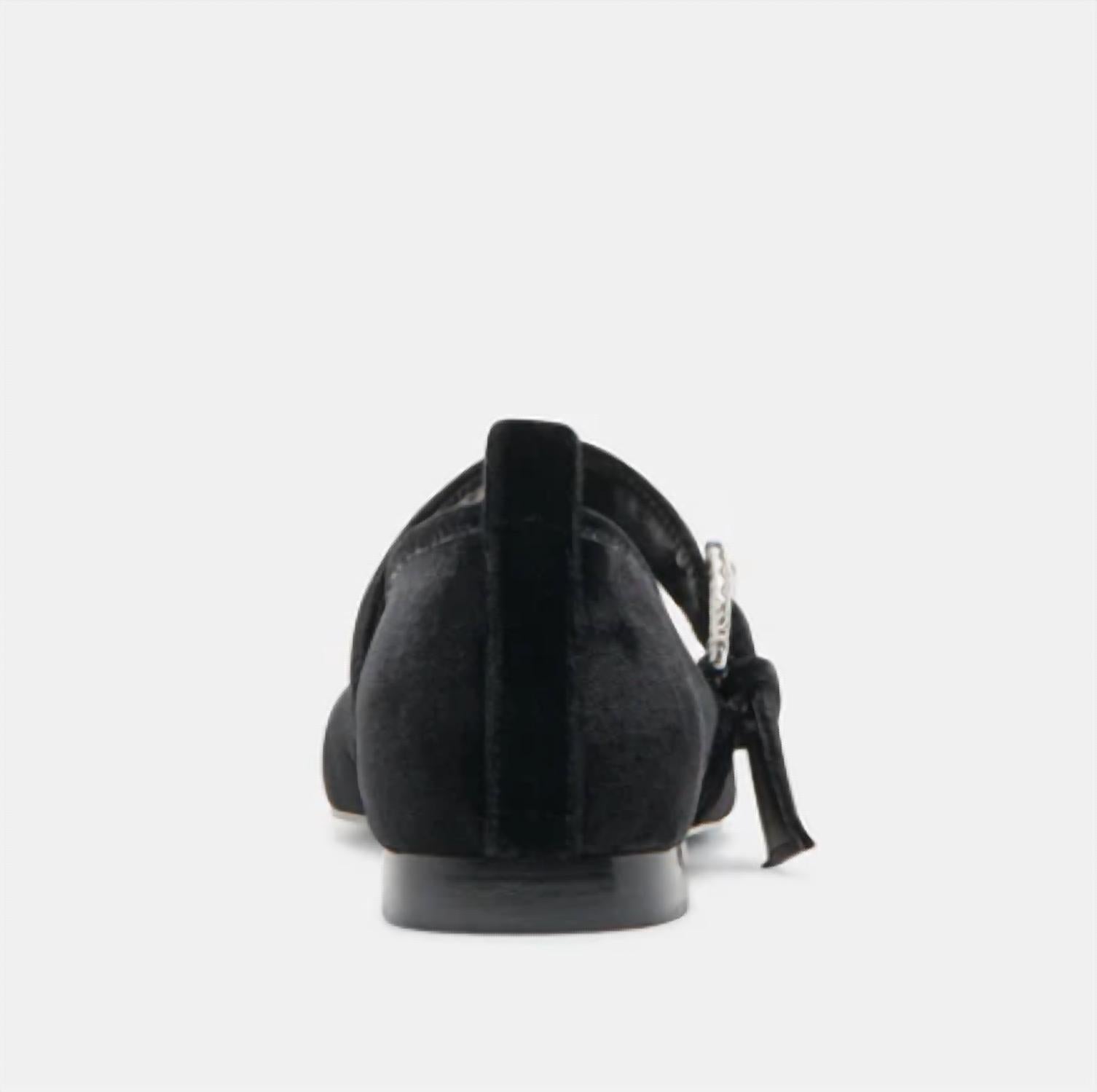 Introducing the Arora Ballet Flat by Dolce Vita, a chic update on the classic favorite for the modern trendsetter. These Nero Velvet flats feature a textile upper adorned with a chanel-stitched strap and metallic buckle detail, offering just the right amount of edgy style. The flat boasts a recycled synthetic outsole and a lining made from recycled textile and a water-based leather alternative. Heel height: a subtle 0.4". Imported. True to size.