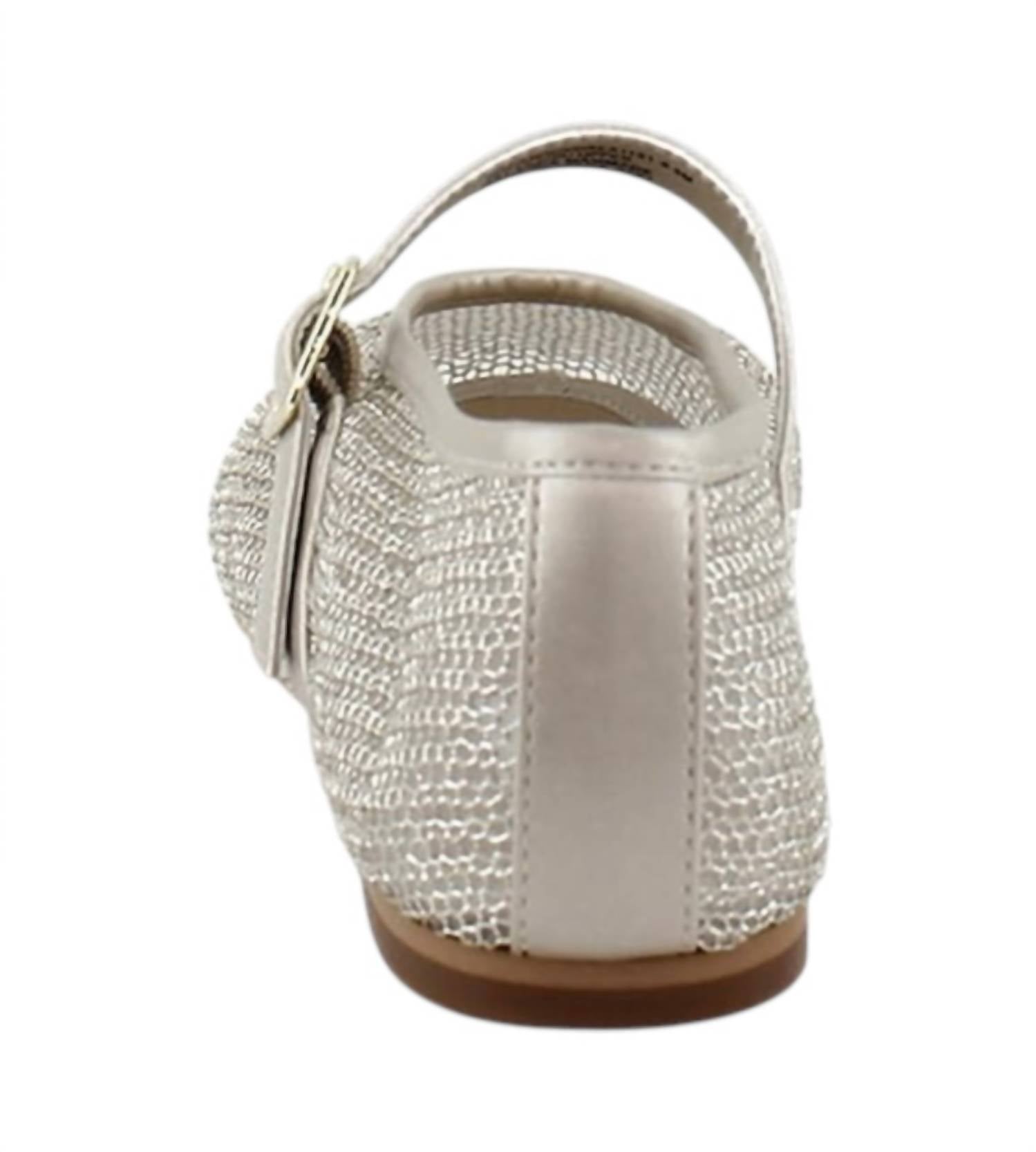 Discover the Steve Madden Women's Dreaming Mary Jane Flats, the perfect minimalist choice for any dinner party this spring. These sophisticated ballet flats in Light Gold Mesh feature a round toe design with an ankle strap and buckle closure for a secure fit. Crafted with a synthetic rubber lining, insole, and outsole, these flat-heeled shoes ensure all-day comfort and style. Effortlessly balancing chicness and practicality, they are a must-have addition to your wardrobe.