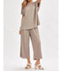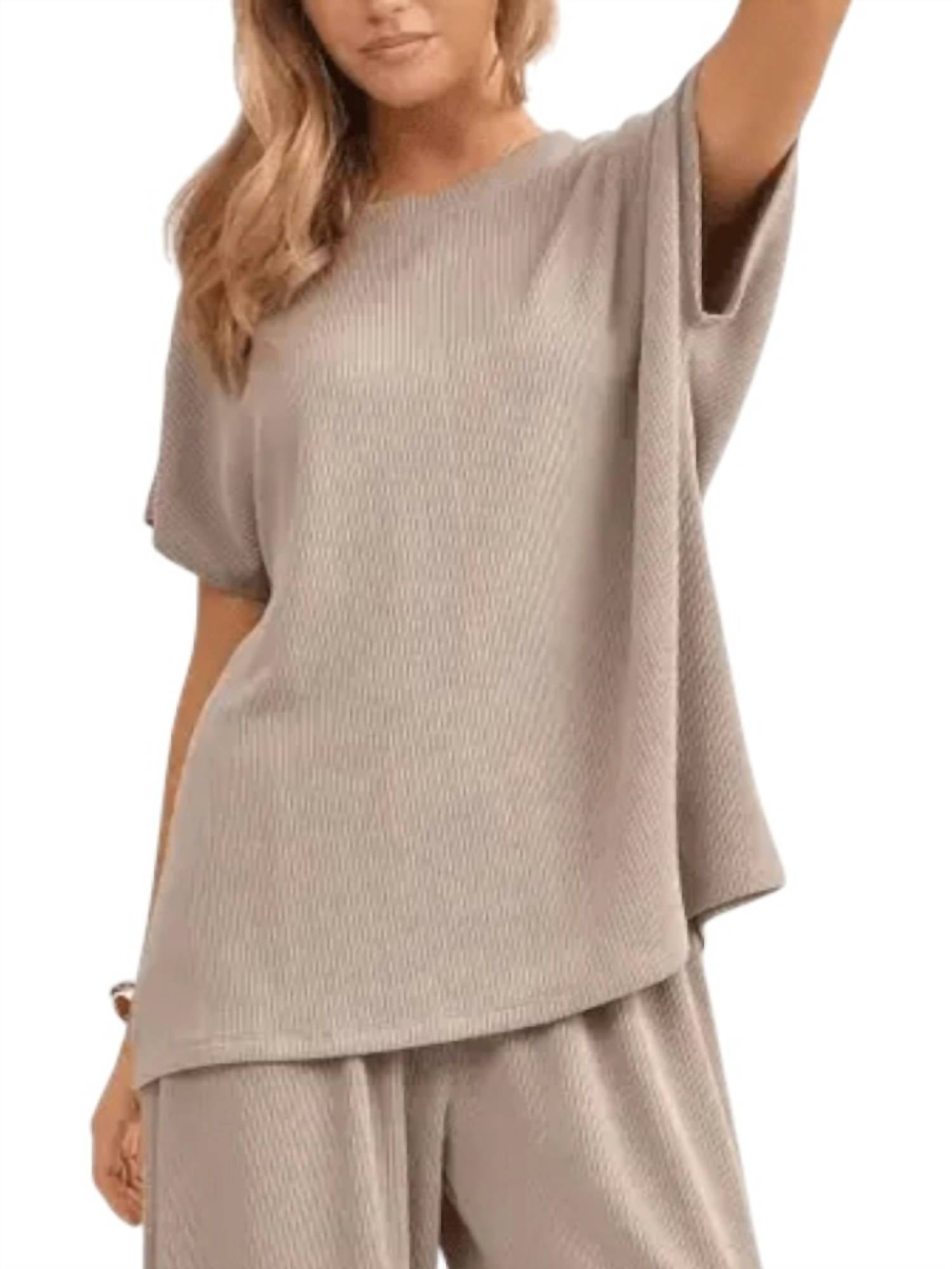 Step into relaxed elegance with the Dear Scarlett Palm Beach Travel Set. This loungewear set features a short sleeve v-neckline tunic top paired with loose, wide-leg pants, both crafted for a minimalist aesthetic in textured polyester with 4% spandex. An elastic waistband ensures a comfortable fit, and the fabric is thoughtfully designed to be wrinkle-free for ease of maintenance. Care: Machine wash. Ideal for vacation, spring outings, or a stylish Day.