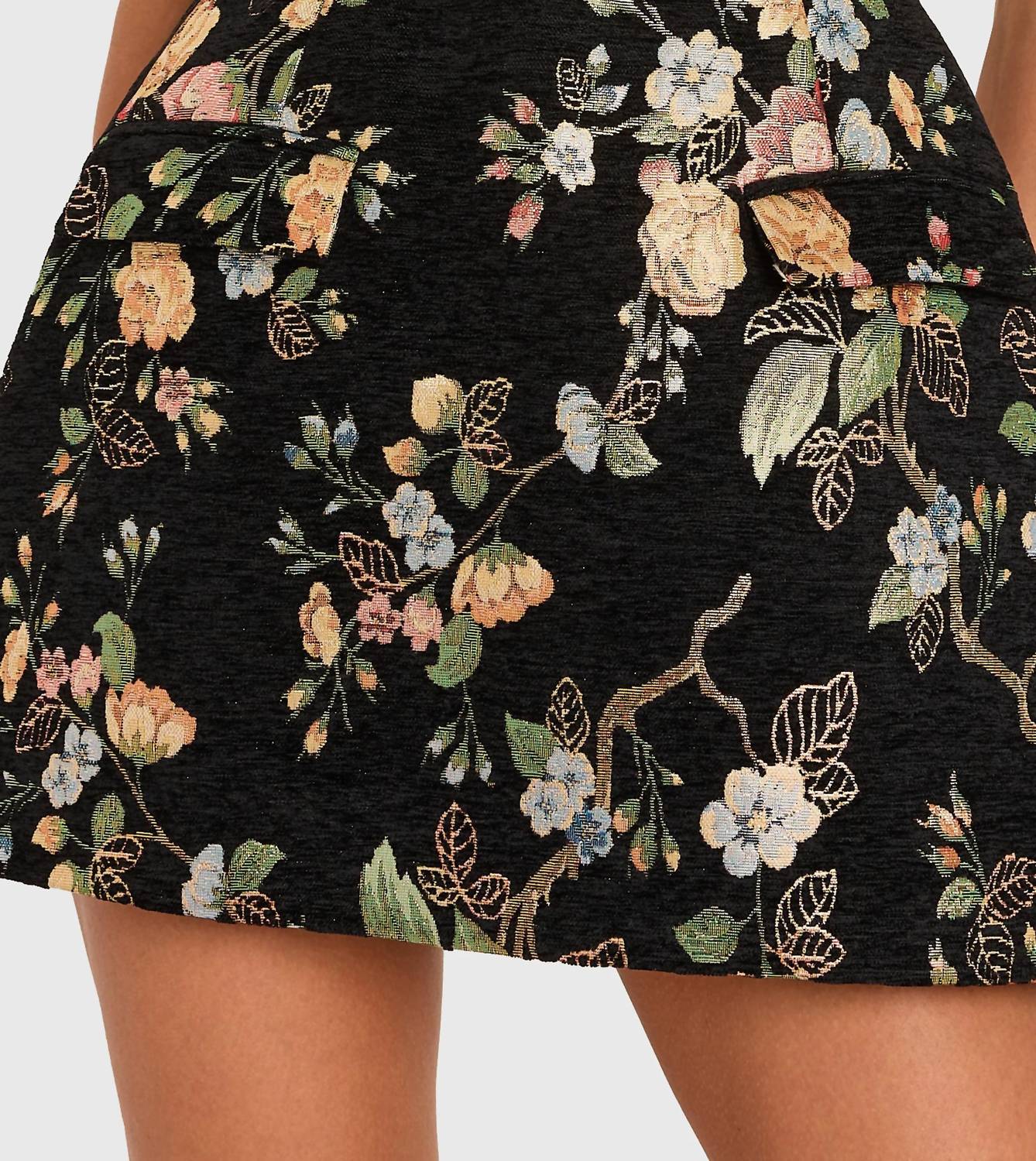 The perfect outfit choice when you you need something quick to throw on and still want to look efforlessly cool. The Amanda Uprichard Bethany Floral Romper in Black Gold is a chic choice for those who appreciate understated elegance. This mini skort romper features wide adjustable straps, a straight neckline, and a bell-shaped skirt, complete with faux flap pockets and side smocking for an easy fit. Made from 100% Jacquard textile with a fully lined interior of 95% polyester and 5% elastane, and finished with an invisible zip closure at the back. Care for this fashionable piece by dry cleaning only; it's perfect for holiday parties and brings a hint of maximalist style to your wardrobe.
