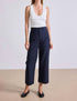 Presenting the Women's Classic Merida Pants by APIECE APART, skillfully crafted for a sleek fit in a timeless navy hue. With a high-rise and wide-leg style, these solid pants are the ultimate choice for a chic silhouette. The pull-on closure ensures convenient wear, while practical pockets add functionality to this summer streetwear staple. Designed with a tight fit through the hips, these pants deliver a figure-enhancing appeal, ideal for vacation settings.