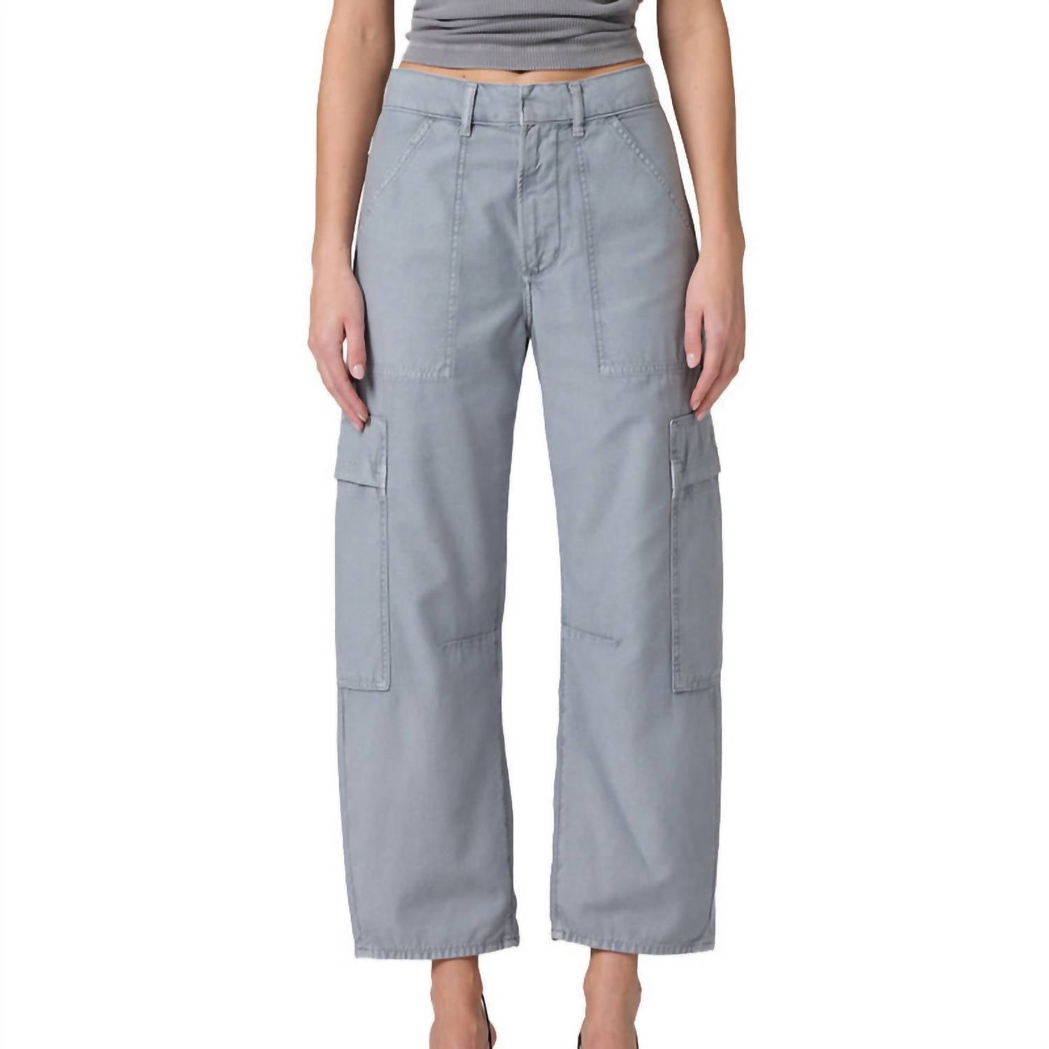 A straightleg pant that workes season after season. Dress these up with your favorite blouse or keep it casual with your go-to tee. Discover the Marcelle Cargo Pants by Citizens of Humanity, offering laid-back style with utilitarian charm in a striking hematite hue. These pants feature a straight leg design that tapers at the ankle and are crafted from 100% regenerative cotton twill for a breathable yet structured feel. Closure: Zip closure. Care: Machine wash, tumble dry. With its comfort fit and multiple pockets, this versatile piece is perfect for transitioning from sneakers to heels, making it ideal for camping or streetwear occasions.