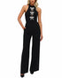 Introducing the Bo Flared Jumpsuit from Helsi, a versatile piece in sleek black crafted for a stylish wardrobe. This jumpsuit offers a flattering wide-leg silhouette with a relaxed fit, perfect for various occasions. It is made in the USA from 97% polyester and 3% spandex, ensuring comfort and a great fit with a 30-inch inseam. Closure is via a center back zip, and it's recommended to dry clean to maintain its pristine look.