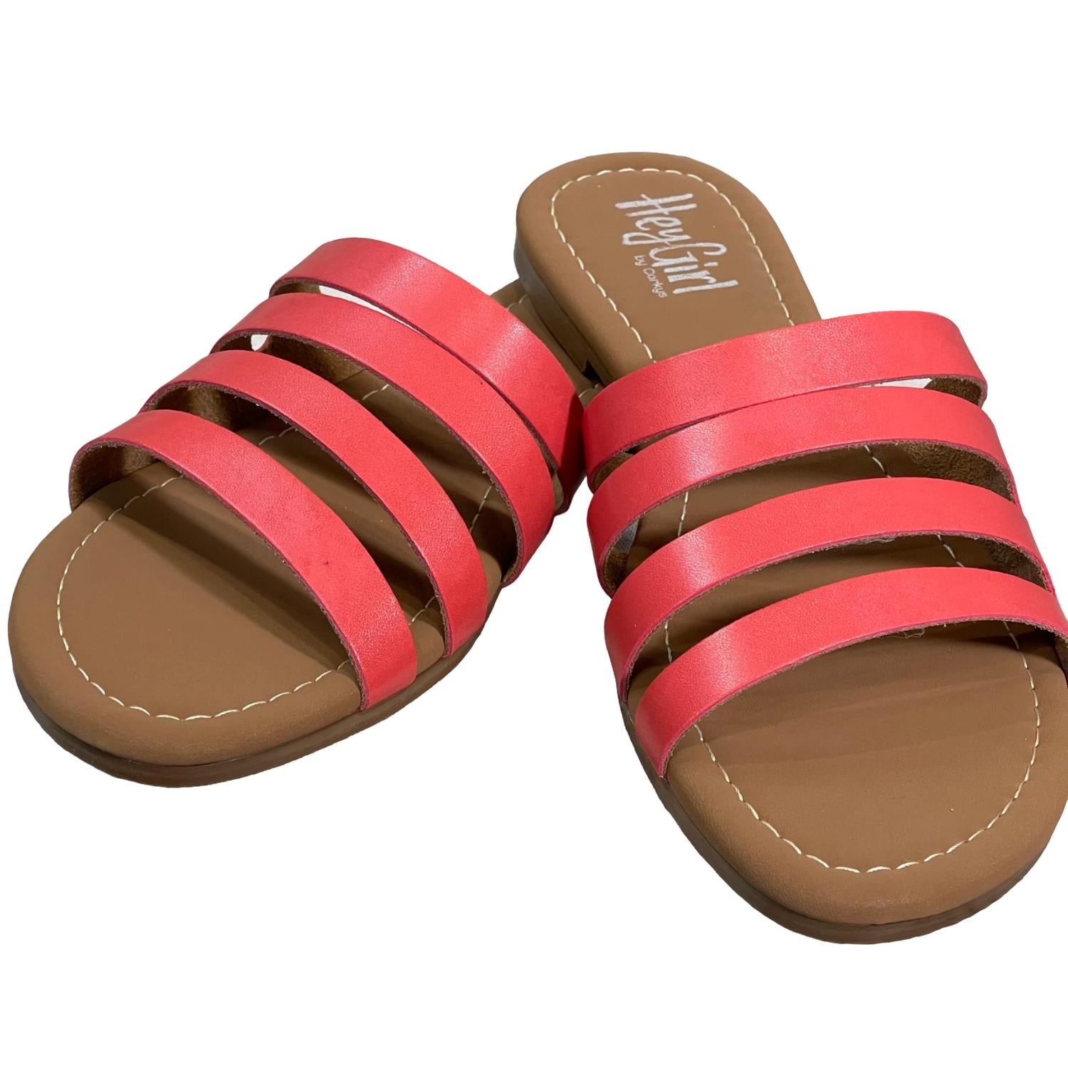 Classicly cute and all-day-wearable. We love this sandal.These slide-on shoes feature a four-strap design across the top of the foot for a secure fit. They have a durable rubber sole and are true to size for comfortable wear