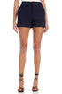 Elevate your summer wardrobe with the Modern Shorts by Fifteen Twenty, a chic choice for minimalist style. Crafted in the U.S.A. from a luxurious blend of 58% Viscose, 37% Cotton, and 5% Spandex, these navy high-waisted shorts feature a solid pattern and offer a flattering 11" rise with a 3.5" inseam. The shorts are designed with a hook and eye zip fly closure and convenient front slant pockets, providing both function and form. Care instructions: Dry clean only. Leg opening measures 24". Perfect for vacation and warm-weather occasions.