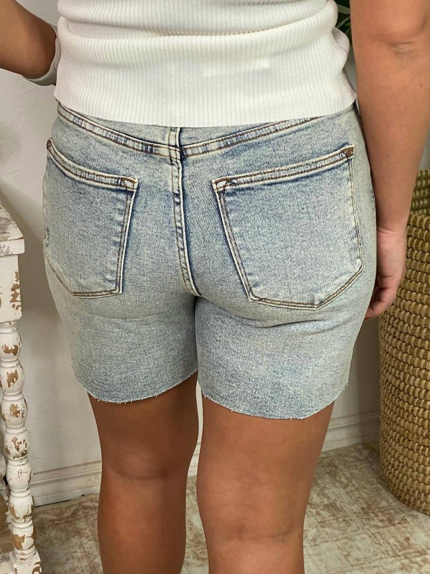 Introducing the High Waisted Mineral Wash Destroy Boyfriend Shorts by Judy Blue, perfect for adding an edgy touch to your summer wardrobe. Crafted from durable denim with a solid blue pattern, these shorts are ideal for a grunge-inspired look. Featuring a high-waisted design and convenient pockets, they offer both style and functionality. Care: Machine wash for easy maintenance.