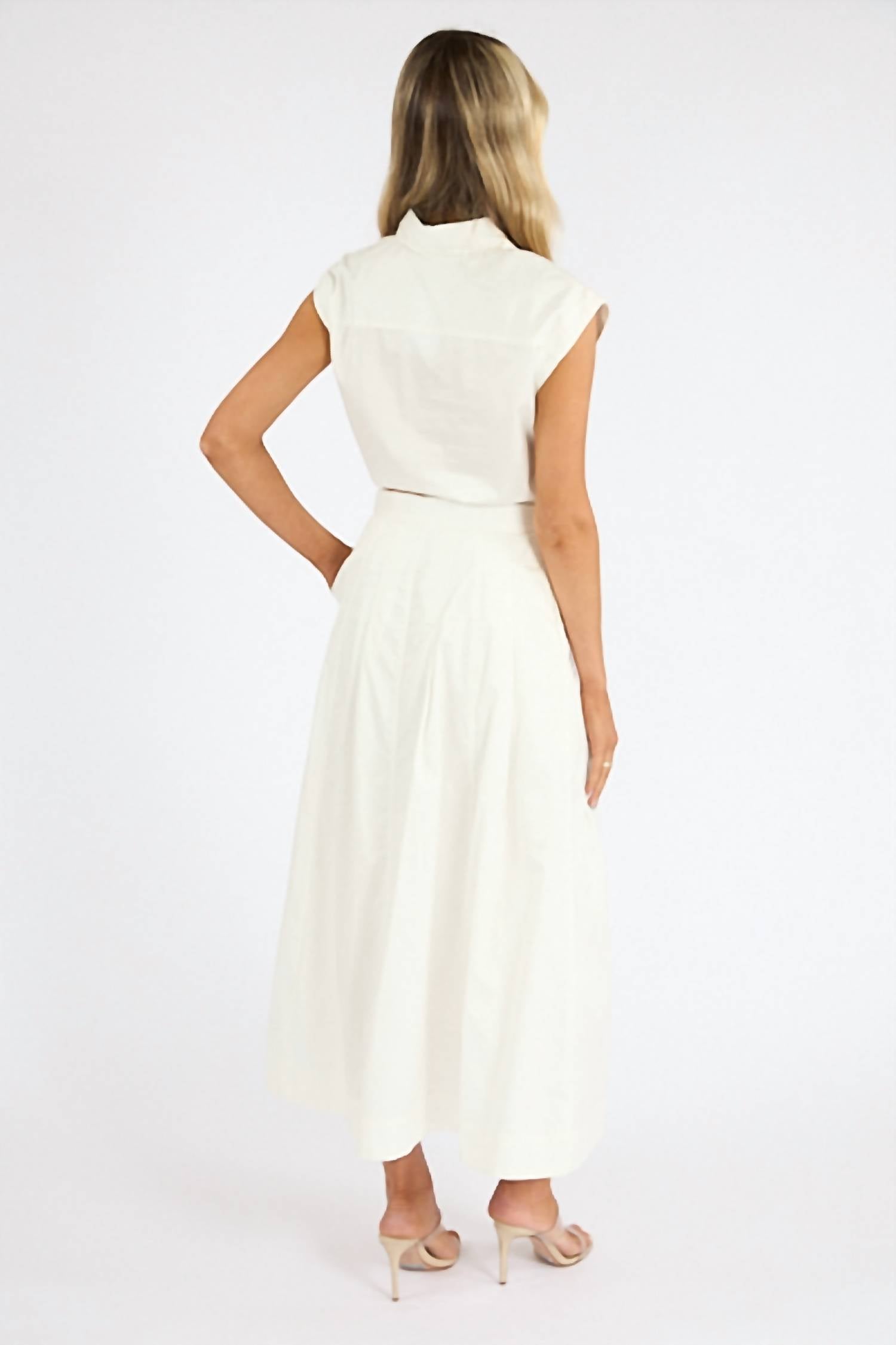 The midi length skirt is here to stay and we especially love this style. Meet the Karina Grimaldi Eden Solid Button Down Skirt, a chic addition to your wardrobe with a stylish solid white design. Crafted from 100% cotton, this women's midi skirt is both breathable and versatile, perfect for any occasion, from workwear to engagements. The button closure adds a touch of playfulness, complemented by practical pockets for functionality. Ideal for the spring season, this skirt effortlessly transitions from casual to dressy.