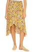 Tuck your favorite tee into this midi length skirt for an effortlessly cool look.Faux wrap design. High-low hemline. Side zipper with hook and eye closure. Removable tie belt detail. Vibrant yellow floral print. Not lined. Perfect for the office or the weekend. Model is wearing size XS. Height: 5'4". Bust: 32". Waist: 26". Hips: 34". Machine wash cold, do not bleach and low iron if needed.