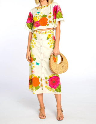 Elizabeth And James - Frannie Button Front Printed Midi Skirt