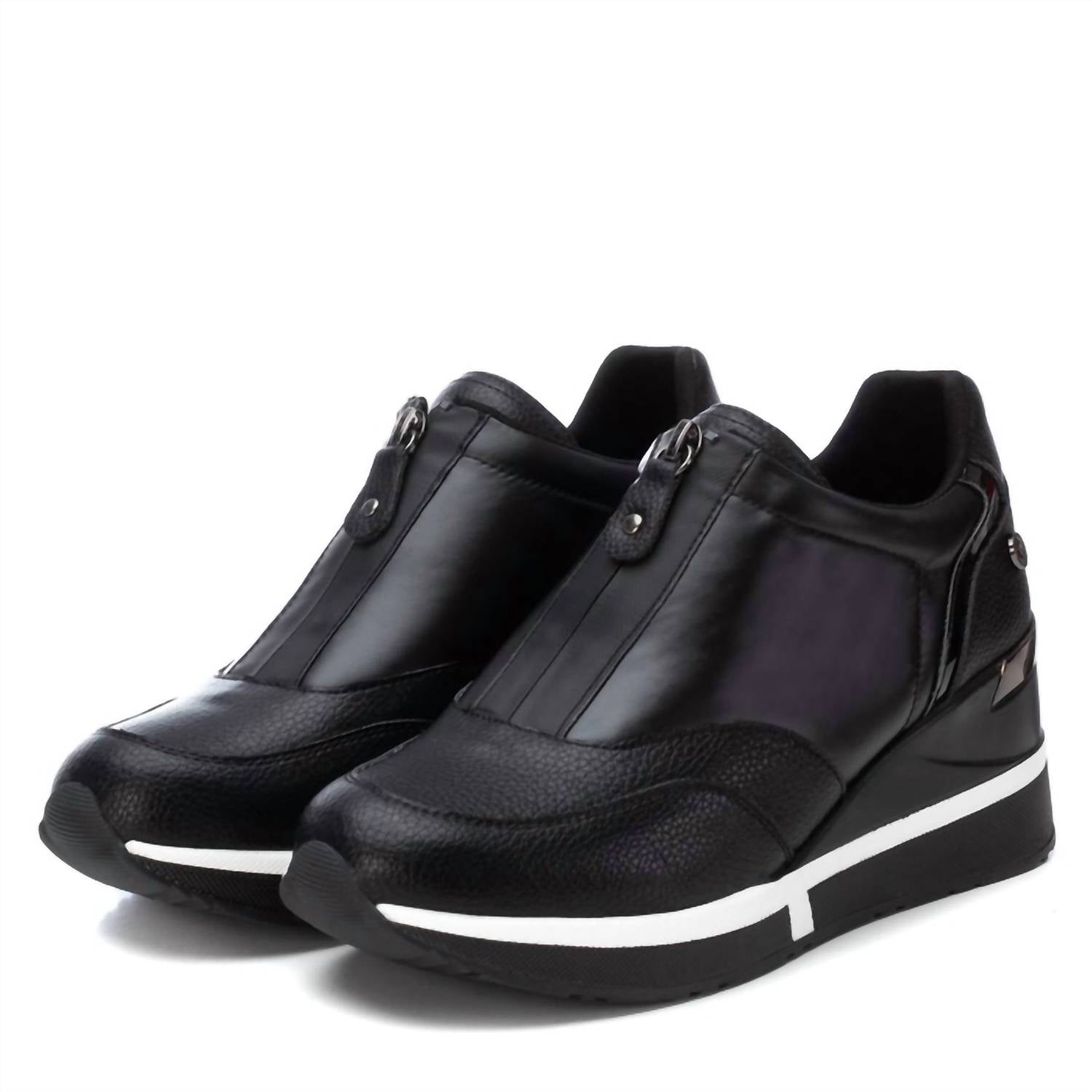 When fashion and function come together seamlessly.This Trainer Sneaker blends textiles with a front zipper closure for easy wear. It features a 2.36-inch wedge heel, round toe design, and a removable insole for comfort. Made with certified vegan materials.