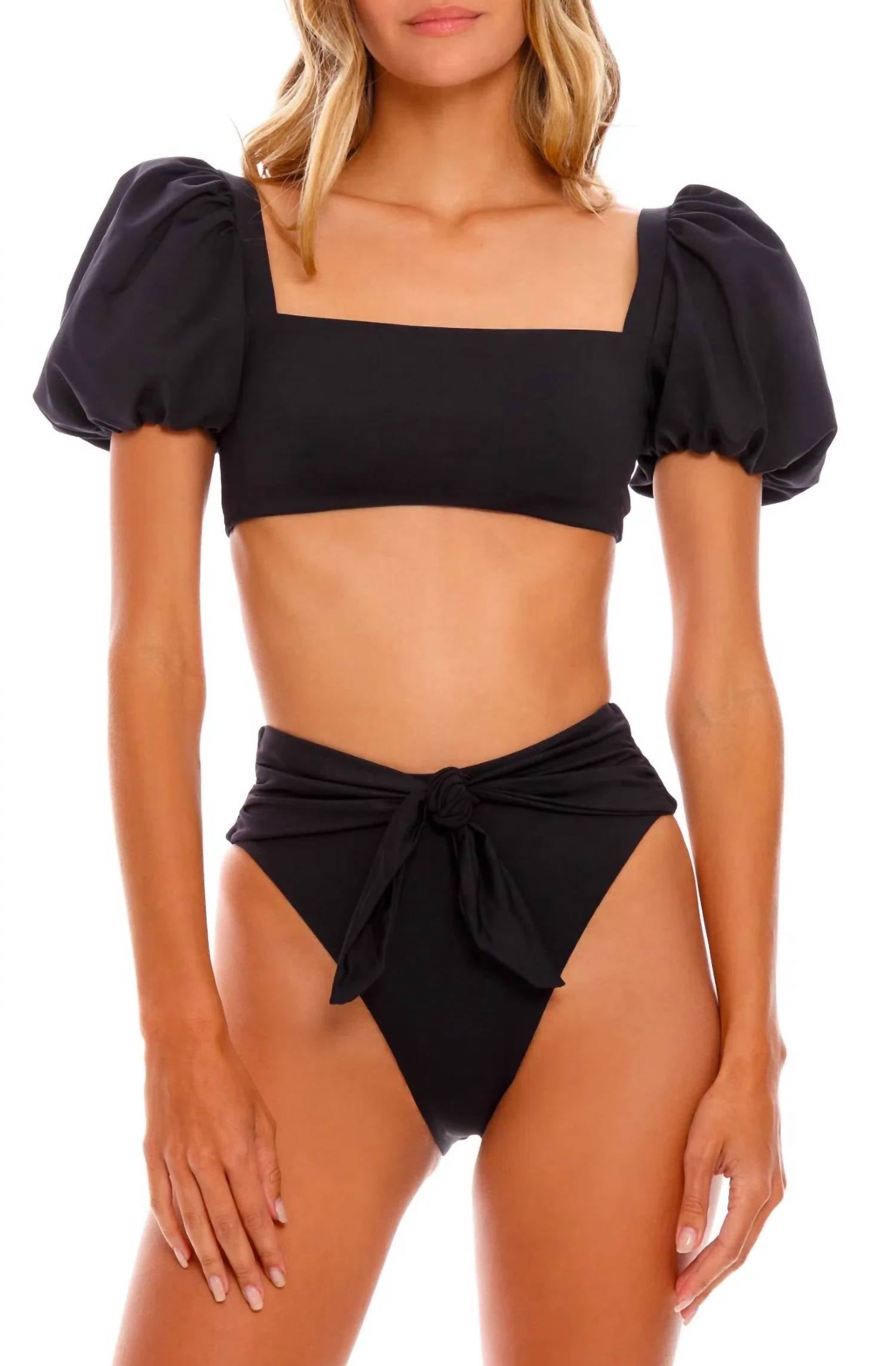 This cute and flattering swimsuit is perfect for making a splash at the pool, lounging on sun-kissed beaches, and staying stylish throughout the upcoming summer season. Dive into summer with the AGUA BENDITA Calista Swimsuit Bikini Top, a sleek nautical blue piece designed for both style and comfort. This swim top features oversized puffy balloon sleeves and a knot tie back for an adjustable fit, perfect for a beach day look. Crafted from luxurious nylon, it offers a classic silhouette with a supportive underband, adjustable straps, and a minimalist solid pattern. Care: Machine wash and line dry.