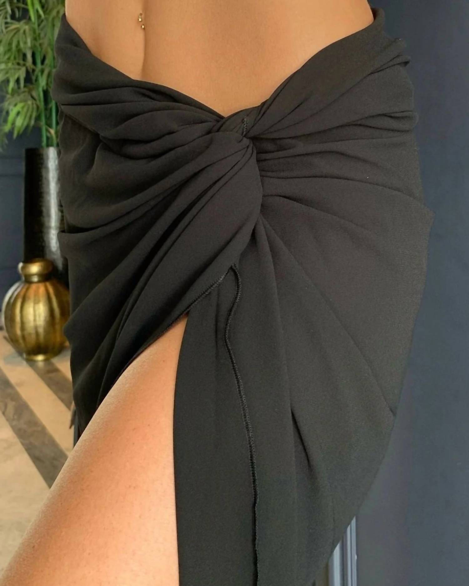 Dream of your next beach getaway in this cute little number. Pair with strappy sandals, a floppy hat, and an oversized tote to complete the perfect vacation look. Elevate your beach look with the Agam Bikini Skirt by Bananhot, an enticing swim bottom in solid black. Made from premium Lycra, this high-rise swim skirt offers cheeky coverage, perfect for those sun-soaked beach days. Designed in Bananhot's Tel Aviv studio, it brings a touch of Tel Aviv's vibrant beach culture to your summer wardrobe. Care instructions are simple: hand wash and lay flat to dry, preserving its flattering fit season after season.
