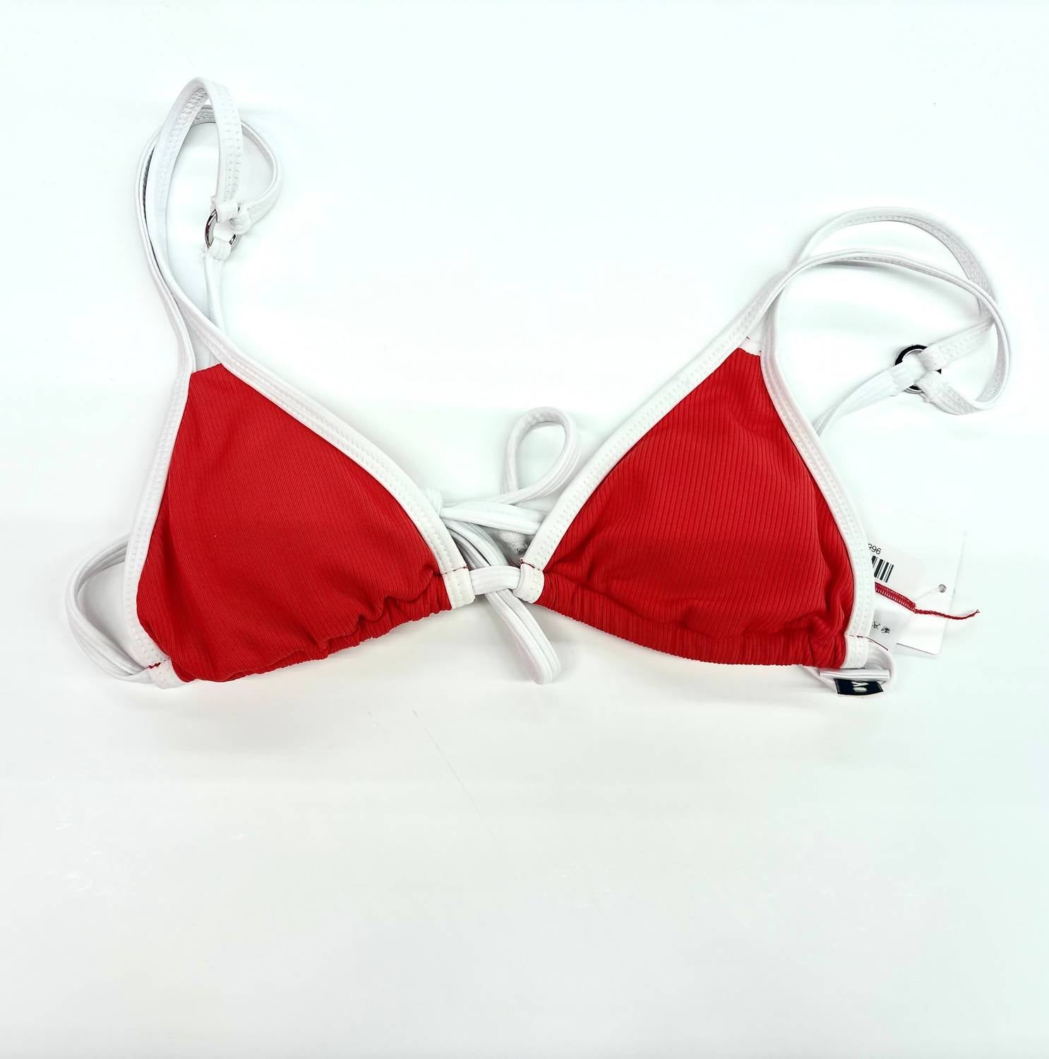 Discover the Billy Top by Dippin' Daisy's, a chic swim top in stylish poppy and white perfect for that minimalist beach day look. This women's triangle bikini top features a solid pattern, crafted from a comfortable nylon blend. Perfect for your summer adventures, it pairs seamlessly with any bikini bottom to create a cheeky yet flattering silhouette. Care: Hand wash only.