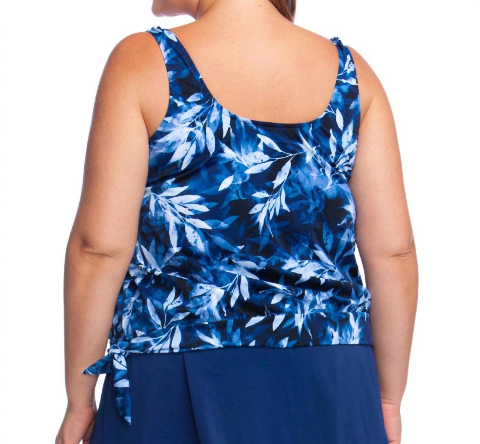 This cute and flattering swimsuit is perfect for making a splash at the pool, lounging on sun-kissed beaches, and staying stylish throughout the upcoming summer season. Elevate your swimwear collection with the Plus Size Banded Scoop Blouson Tankini Top by Maxine of Hollywood, designed specifically for a stylish beach day. In a chic navy hue and patterned design, this tankini offers a full coverage fit with a boho chic vibe perfectly suited for summer. Made for women who prefer a swim top with full coverage, this top exemplifies comfort and style. Care for this plus size piece is easy with machine wash instructions.