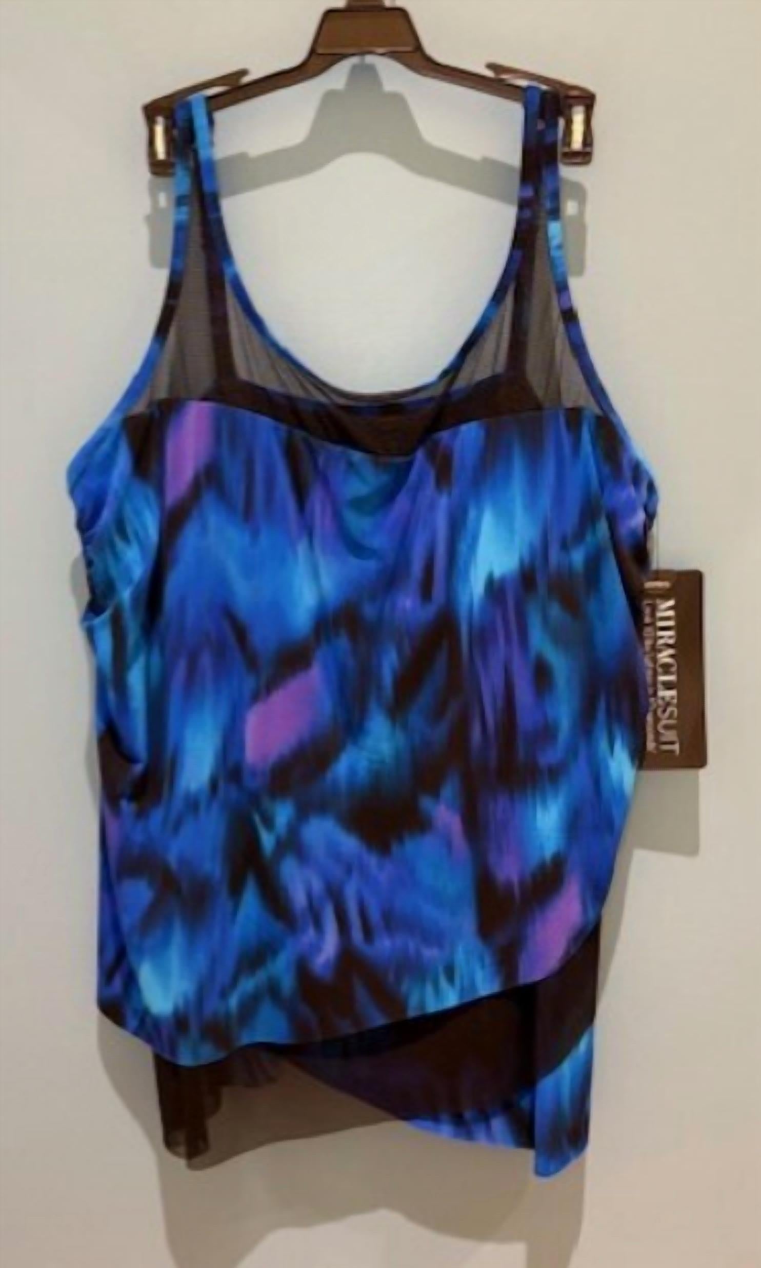 Crafted for the perfect fit and designed to flatter the DD cup size. Effortlessly enhances your beach day look with its scoop neckline featuring a contrast mesh trim. Made from a body of polyester and spandex, with nylon and spandex mesh details. Hits at the hips and offers full coverage. Pull-on with adjustable straps. Hand wash. Promises to make you look 10 lbs. lighter in just 10 seconds. Model’s dimensions: 5'9" height, 32" bust, 24" waist, 35" hips.