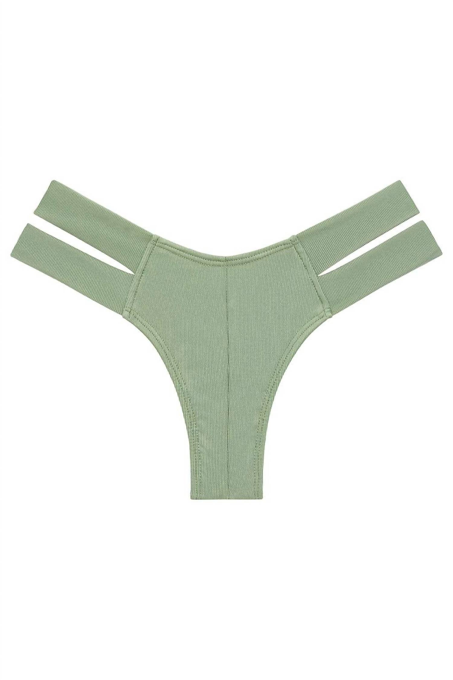 Dream of your next beach getaway in this cute little number. Pair with strappy sandals, a floppy hat, and an oversized tote to complete the perfect vacation look. Experience the elegance of Montce's Sage Green Rib Euro Bikini Bottom, a chic addition to your swimwear collection. This bikini bottom offers moderate coverage with an ultra-low rise and a ruched back designed to accentuate your figure. Made in a silky sage green nylon blend with 80% nylon and 20% spandex, it features micro rib texture and OEKO-TEX and GRS certifications for eco-friendly wear. Care for this stunning piece with a gentle hand wash, ensuring it retains its understated sheen for many beach days to come.