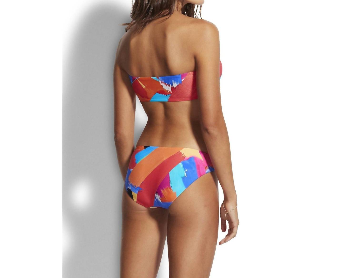 This cute and flattering swimsuit is perfect for making a splash at the pool, lounging on sun-kissed beaches, and staying stylish throughout the upcoming summer season. Introducing the Seafolly Arthouse Bandeau Bikini Top, a perfect blend of vibrant style and eco-friendly design. This chilli red swim top features a bandeau style with a center ring detail and removable cups for added shape and support. Crafted from a luxurious 79% recycled nylon and 21% Lycra blend, it offers a medium coverage while making a positive impact on the environment. Care for this patterned Seafolly piece with a simple hand wash.
