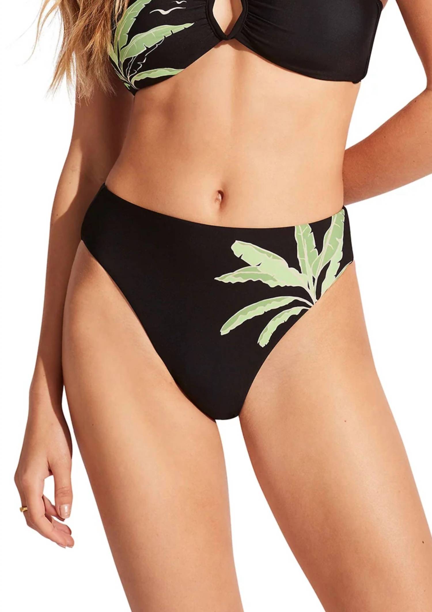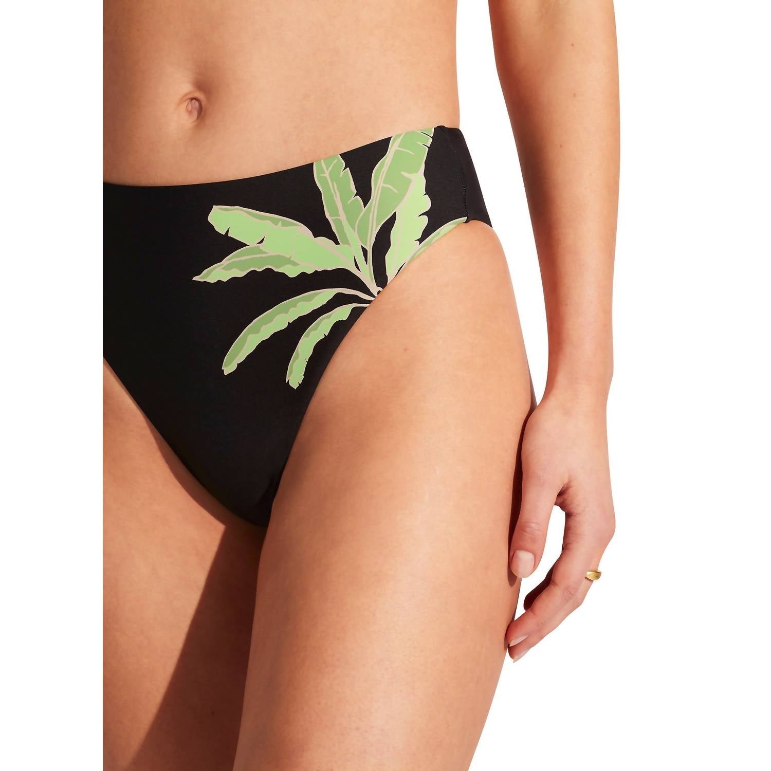 This cute and flattering swimsuit is perfect for making a splash at the pool, lounging on sun-kissed beaches, and staying stylish throughout the upcoming summer season. Introducing the Seafolly High Rise Swimwear Bottom in Palm Paradise Black, a chic choice for your summer beach days. Made from 95% Nylon and 5% Elastane, these bottoms boast a high legline that elongates the leg, offering skimpy coverage with a preppy floral pattern. Perfect for adding a stylish touch to your swimwear collection, they are designed as bikini bottoms with a low rise. Care for these swim bottoms by hand washing them and laying them flat to dry, ensuring they maintain their vibrant look all season.