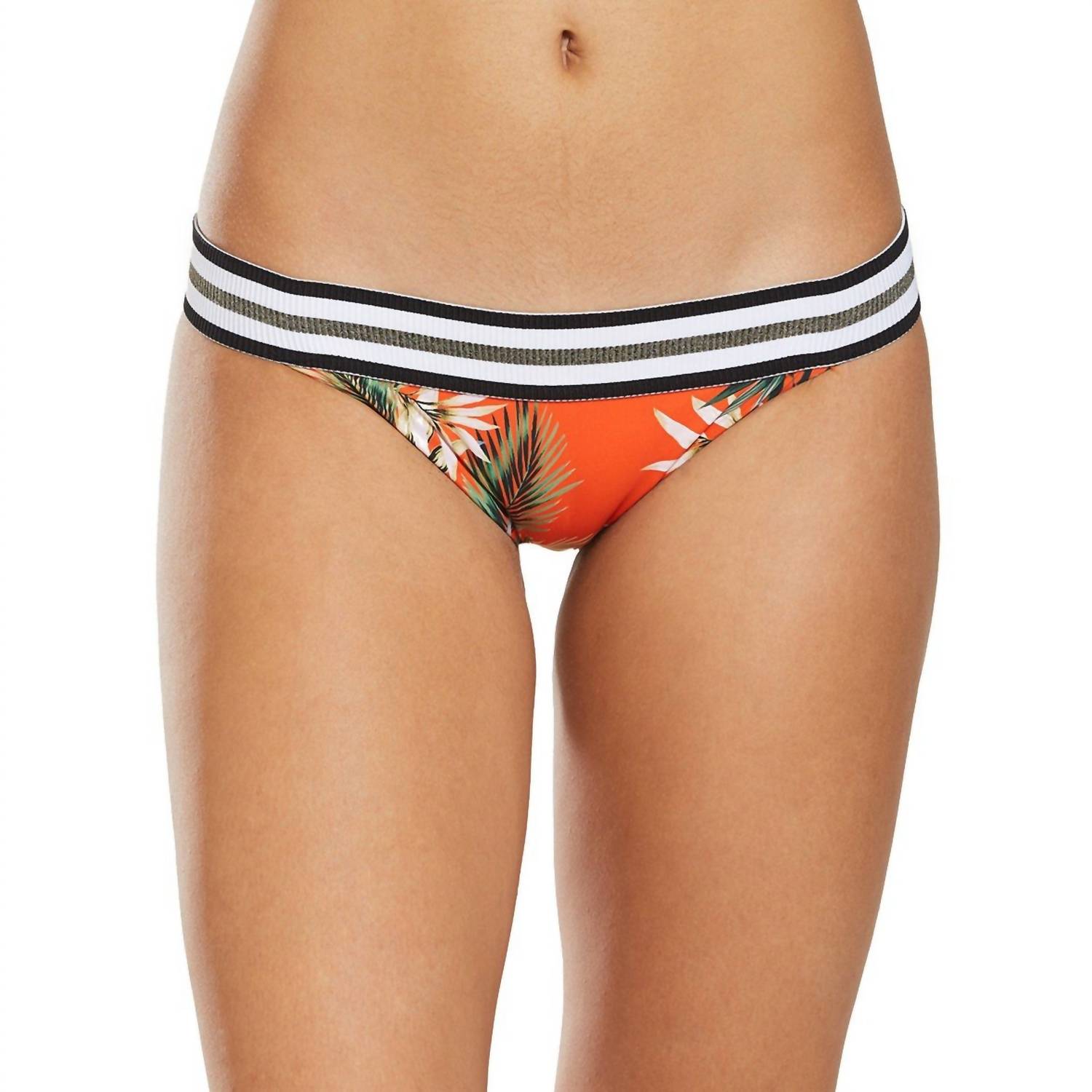 Elevate your beach style with the Ocean Alley Brazilian Bikini Bottom by Seafolly, offered in a vibrant Tangelo hue. Featuring a low-rise waist and cheeky coverage, this bikini bottom is crafted from a printed, stretch fabric composition of 72% Nylon and 28% Elastane. The floral pattern and rib elastic trim add a retro flair, perfect for a summer beach day. Care for your swim bottom by following the individual care labels, and ensure your size is correct as they are listed in US sizes.