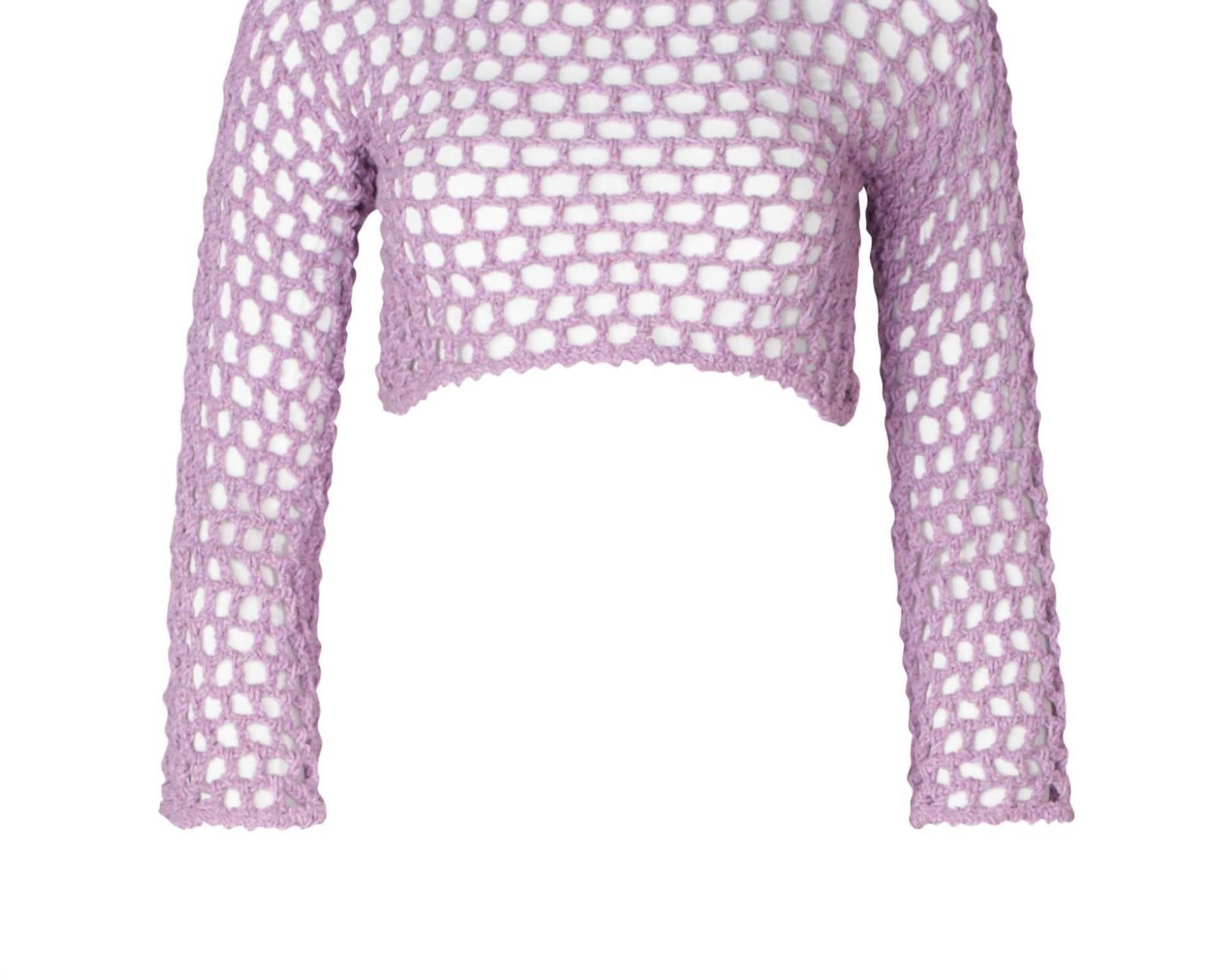 Embrace effortless summer style with the Women's Ane Crochet Crop Top by SOAH in a charming Lilac hue. This chic coverup is expertly crafted from 100% recycled cotton, offering a textured, open-stitch crochet design that embodies beachy elegance. Garment Length: Cropped. Care: Hand wash. Perfect for a breezy beach day, this versatile top is a standalone piece, ideal for pairing with your favorite swimwear.