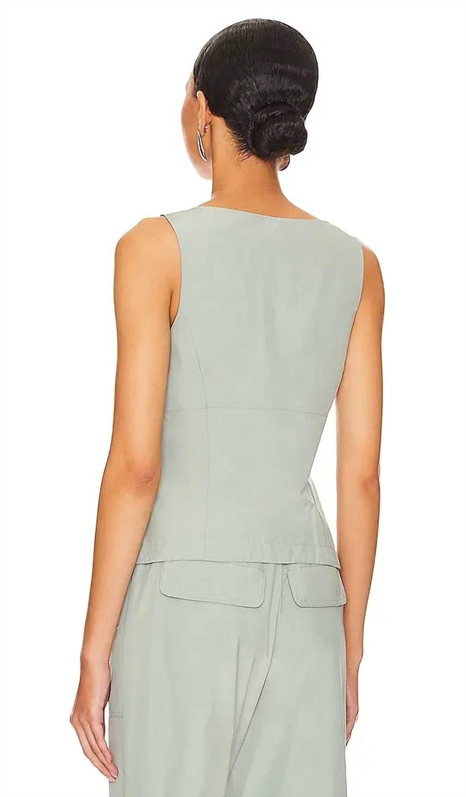 Offering a luxurious feel with a 100% polyester composition. This sleeveless top is expertly designed with a squared neckline and a practical dual-direction front zipper closure. Made in China, it ensures ease of maintenance with dry clean only care instructions. Ideal for adding a contemporary edge to your wardrobe, this solid pattern piece is both chic and versatile.